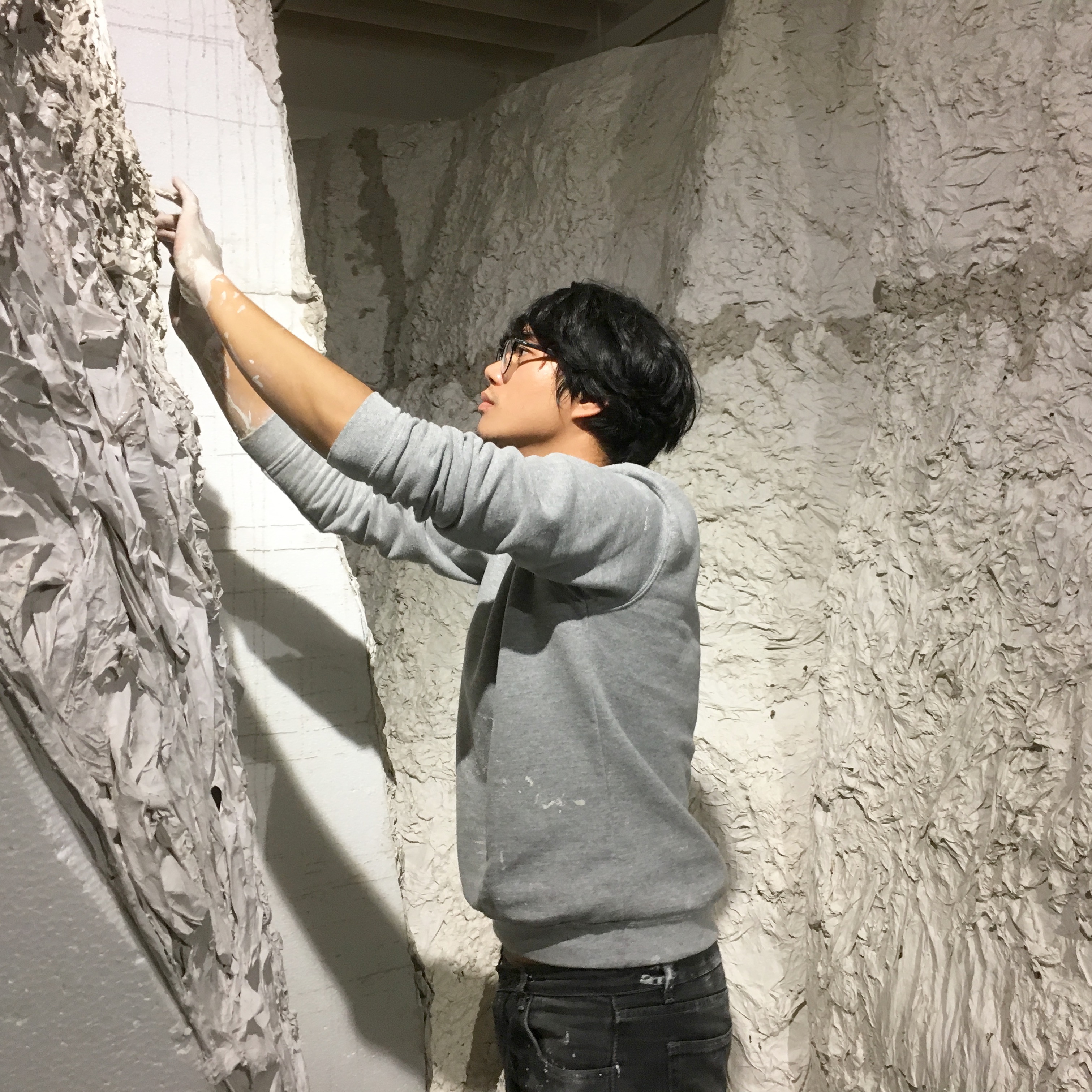 當物件以大量、⼤⾯積的⽅式出現時,觀看上會有一定的震撼,我似乎容易被這類景致吸引,⽽去注意物件處置的意義與空間相處的狀態。最常觀察到這種情況的對象以⽔泥製造物為主,它們⼤量、 快速的被製造,介入環境的普遍甚⾄無功用閒置的堆疊狀態,是我們容易看⾒的。以紙漿再造這些水泥製造物,外觀能接近⽔泥的狀態(色調、肌理...等),同時保有紙漿的材質性(薄、脆弱、容易變形),這些感官上的經驗落差,帶起觀者在⾯對這些物件時,思考物件、⼈、空間互相介⼊的狀態。