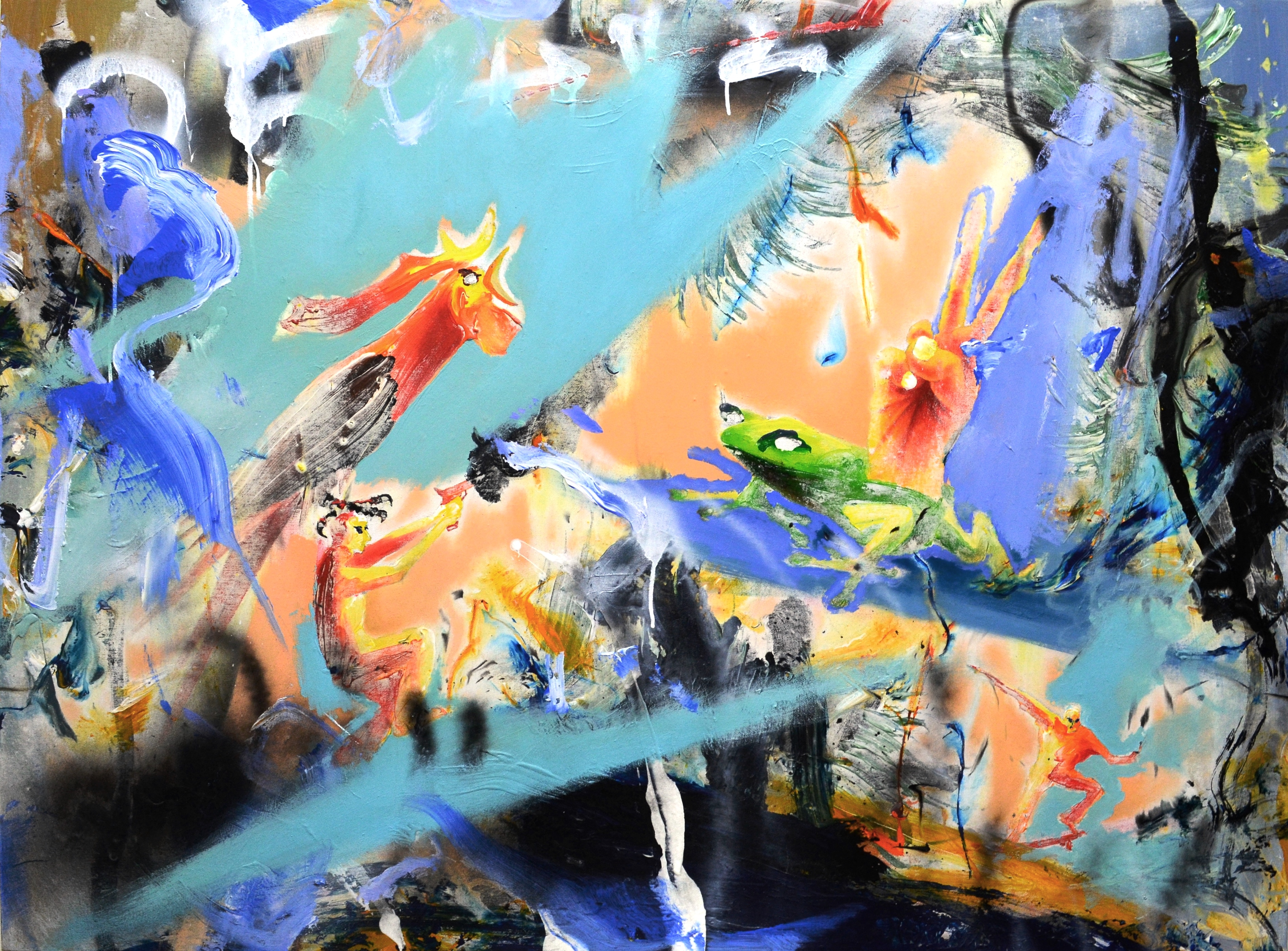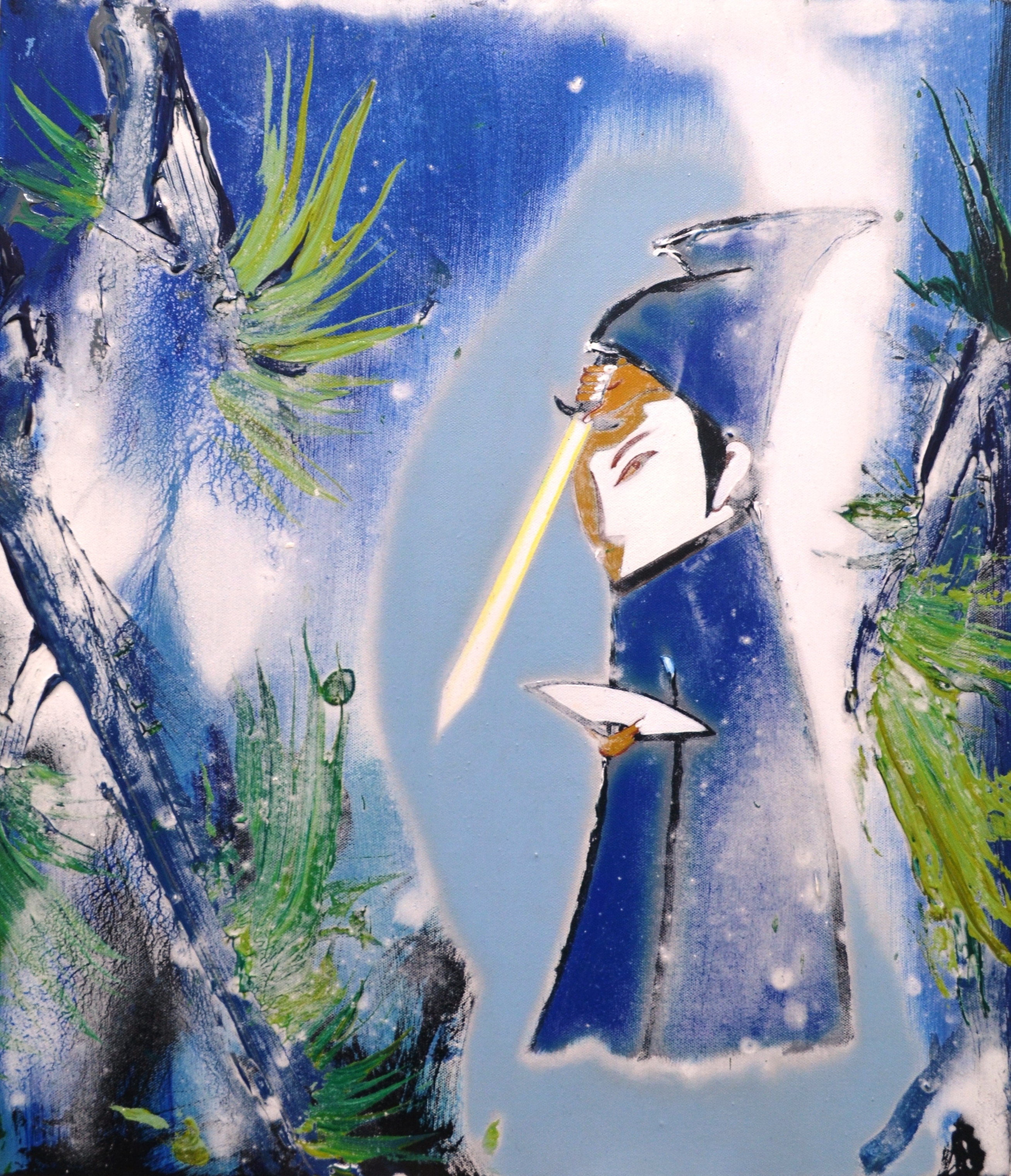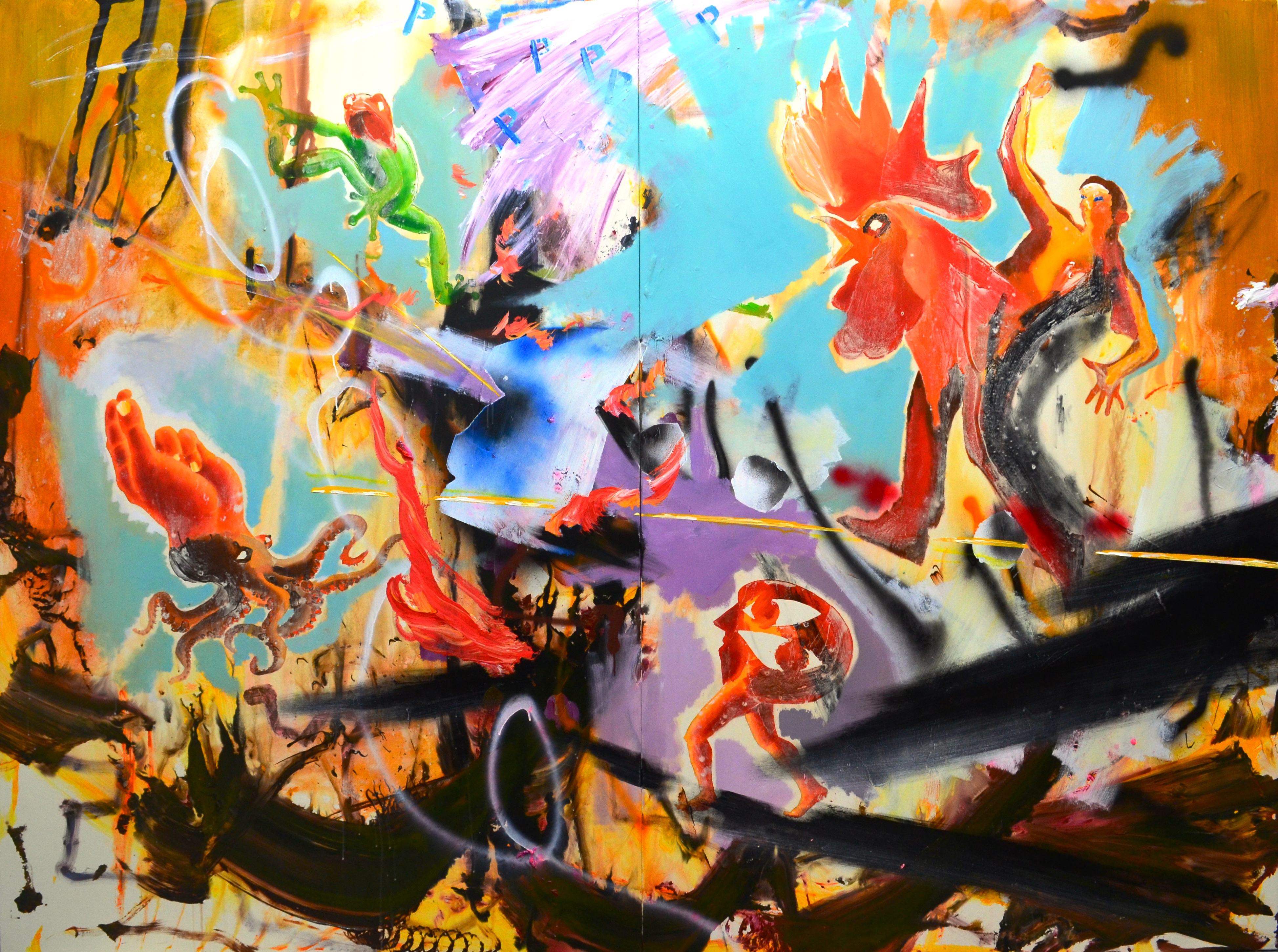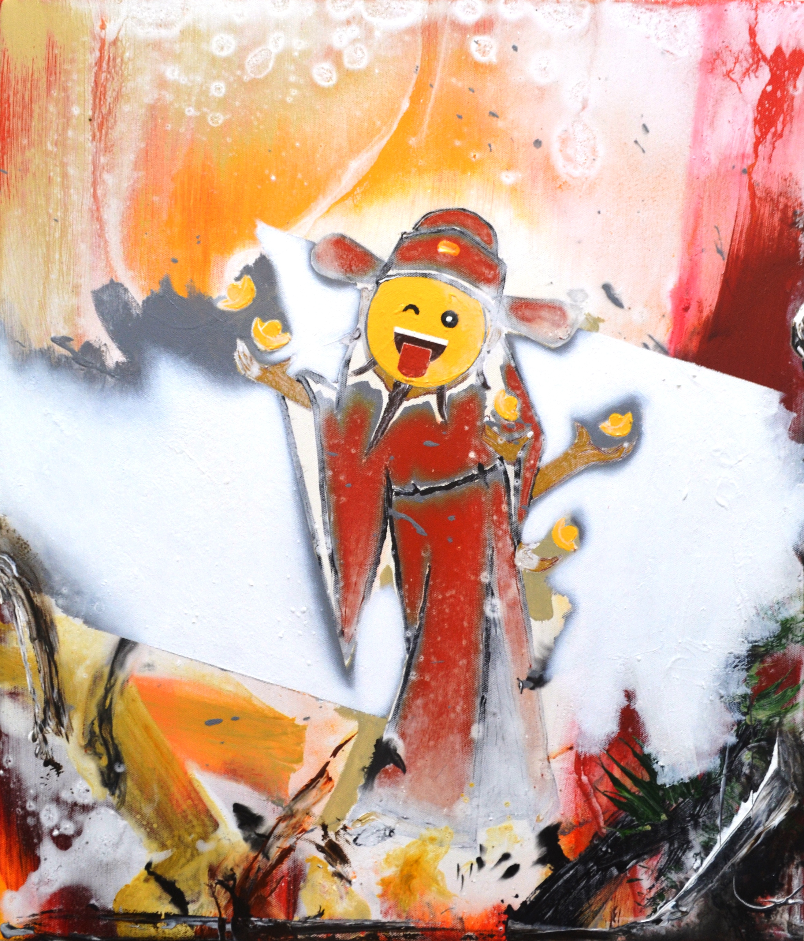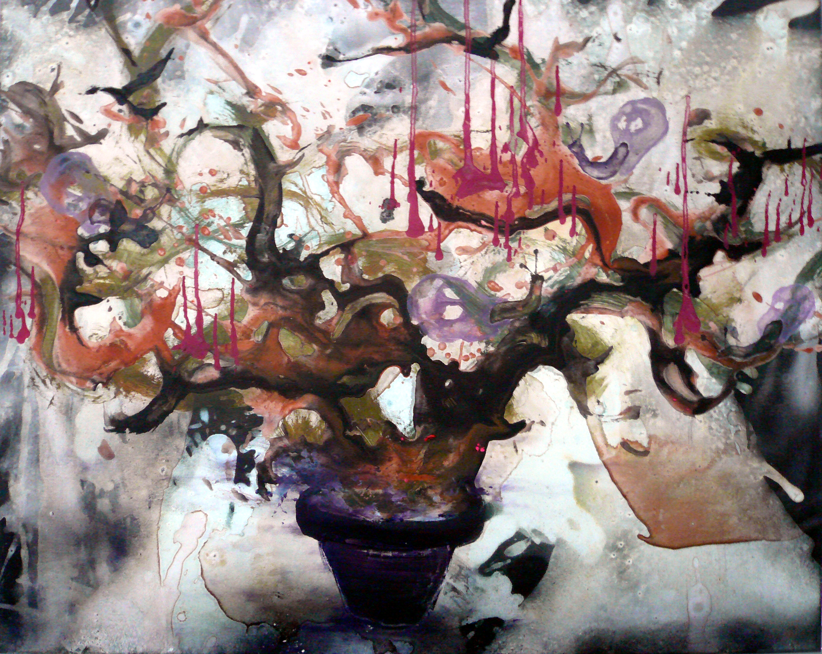 蔡宜儒 (b.1980, 台北) 嘉義大學視覺藝術研究所畢業。以東方水墨意趣融合西方造型思考,透過走筆、渲染、肌理堆疊,藉由解構、嫁接表現次文化、流行娛樂形象與網路符號等的交替運用,亦古亦今的展現成為藝術家獨樹一幟的風格。近期獲中國信託當代繪畫首獎;美術館、藝術中心、基金會等單位典藏,現生活與創作於北台灣。