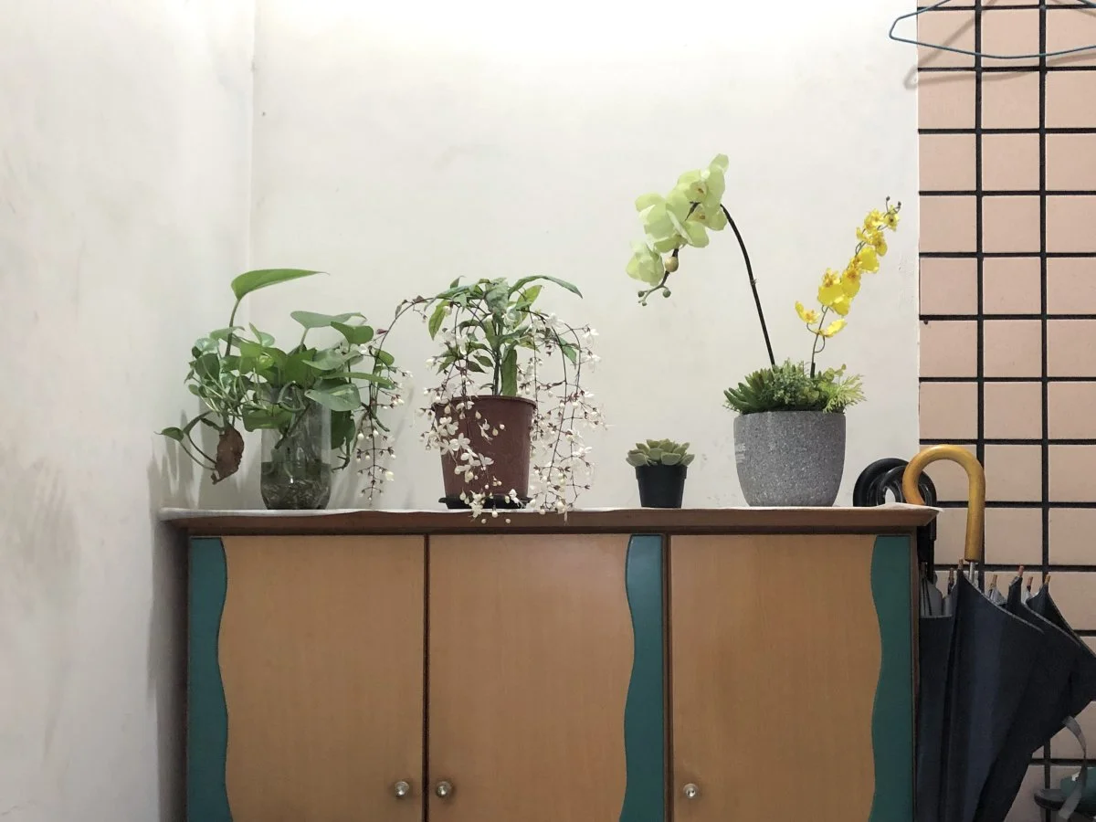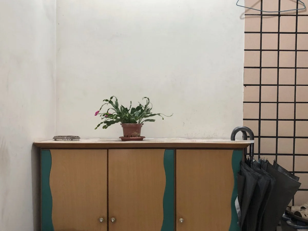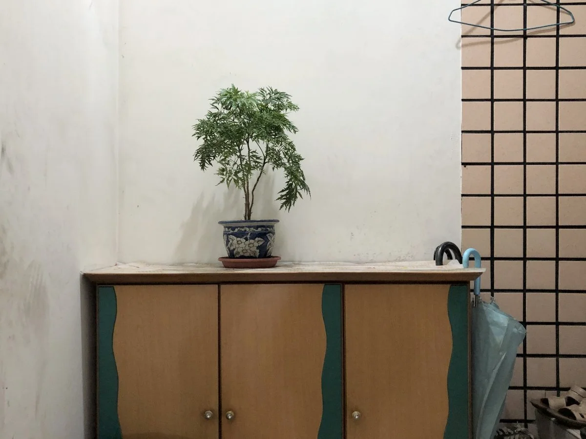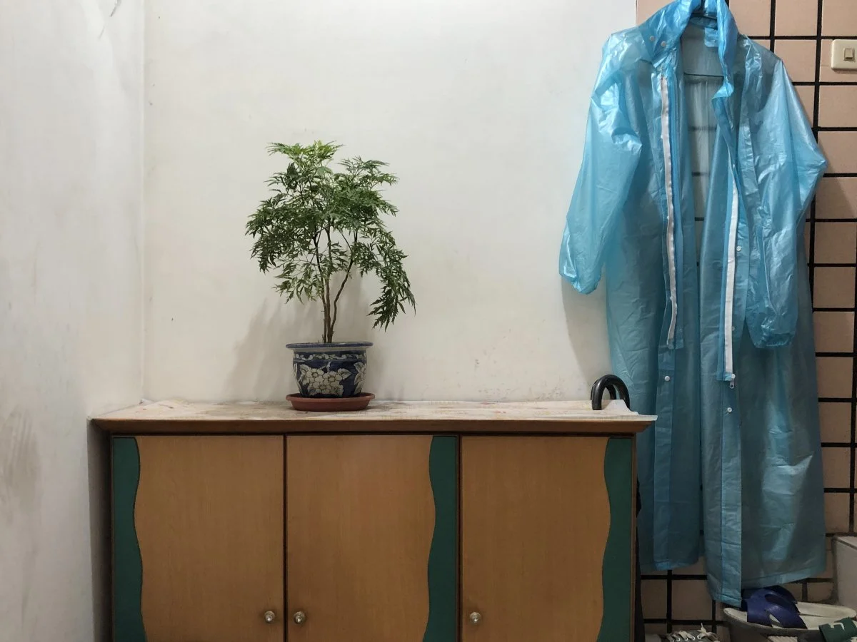 這是一個關於日常累積的攝影計畫。拍攝對象始終如一 —— 公寓樓梯間一隅,鞋櫃、植物、雨衣、雜物,皆為無人注意之物。每當我經過發現變異時拍下一張照片,無涉美學判斷,也不試圖捕捉決定性瞬間。畫面內始終無人(但有時看得到我的影子),卻處處可見人的痕跡:盆栽的更換、植物的榮枯、雨衣的出現又消失……這些細微變化顯示生活在持續發生,即使我們未刻意注視。