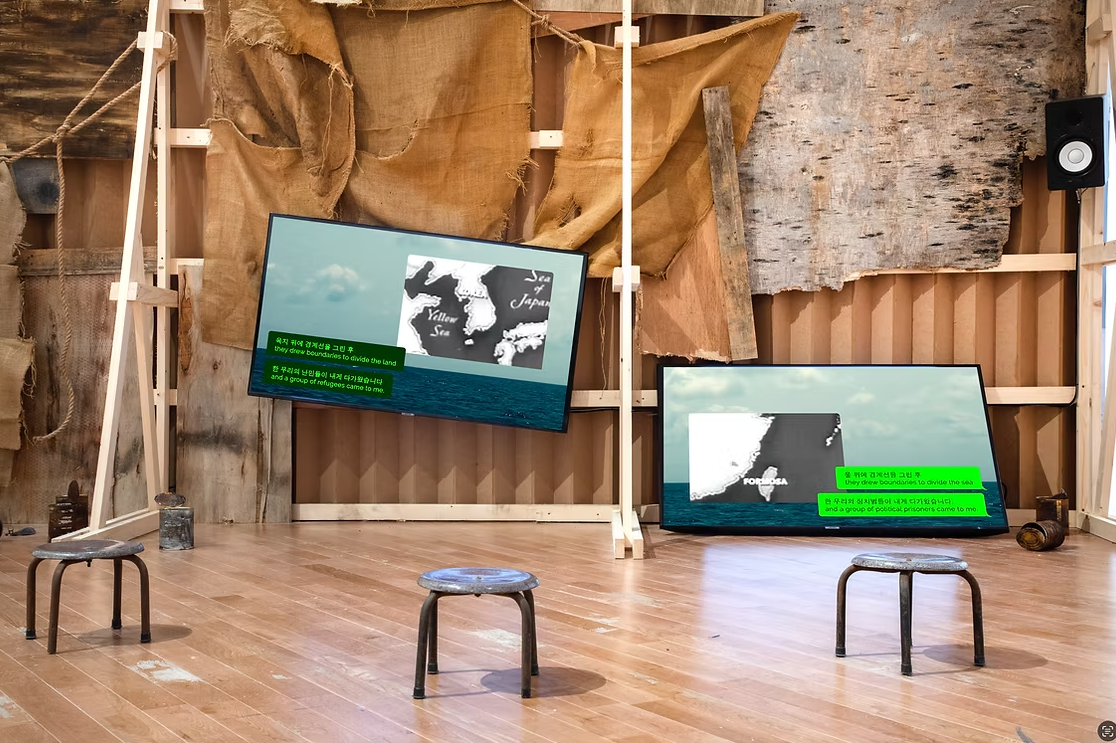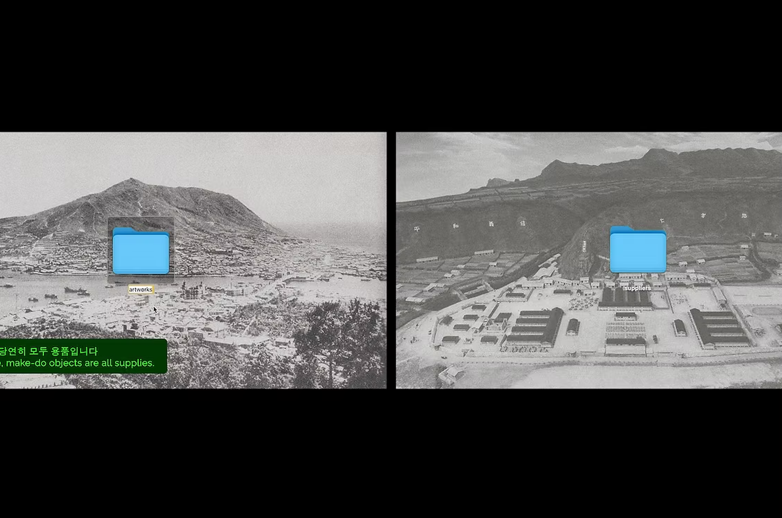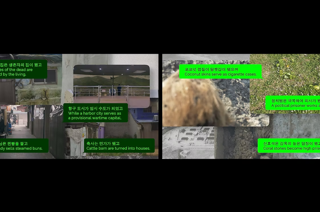 作品探討數位時代以及戰爭期間的資訊過載效應。在光柵輸出裝置的正面,並置了兩個在韓戰期間經歷「資訊過載」的地點:作為白色恐怖時期監獄的綠島,以及作為臨時戰時首都的釜山。裝置背面的結構則參考韓戰時期釜山的難民棚屋以及雙頻道錄像,通過一系列破碎的第一人稱敘事,呈現資訊過載對記憶以及個人日常生活的影響與破壞。