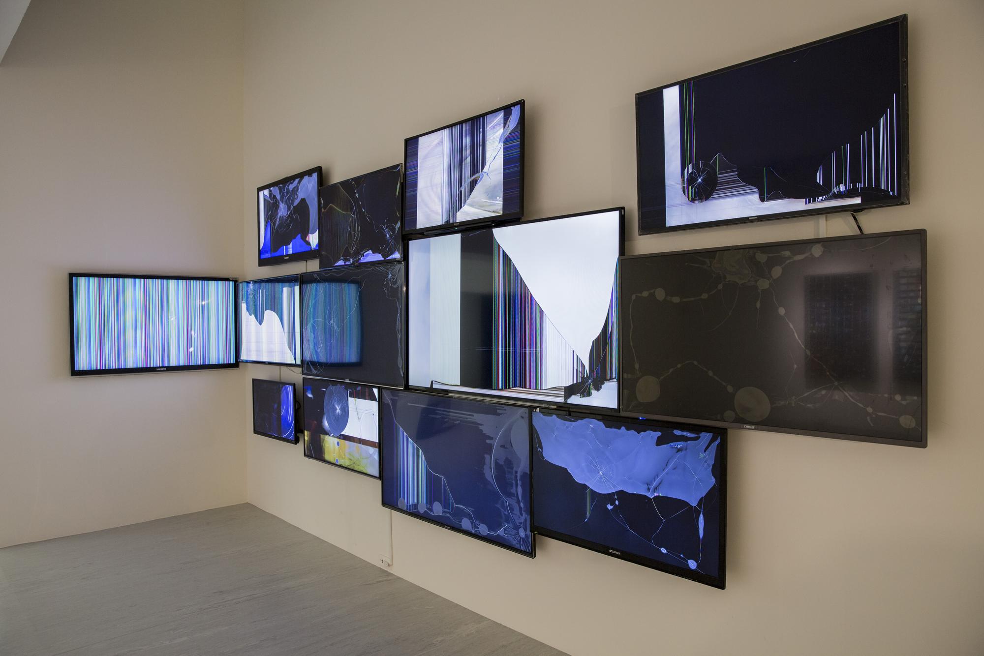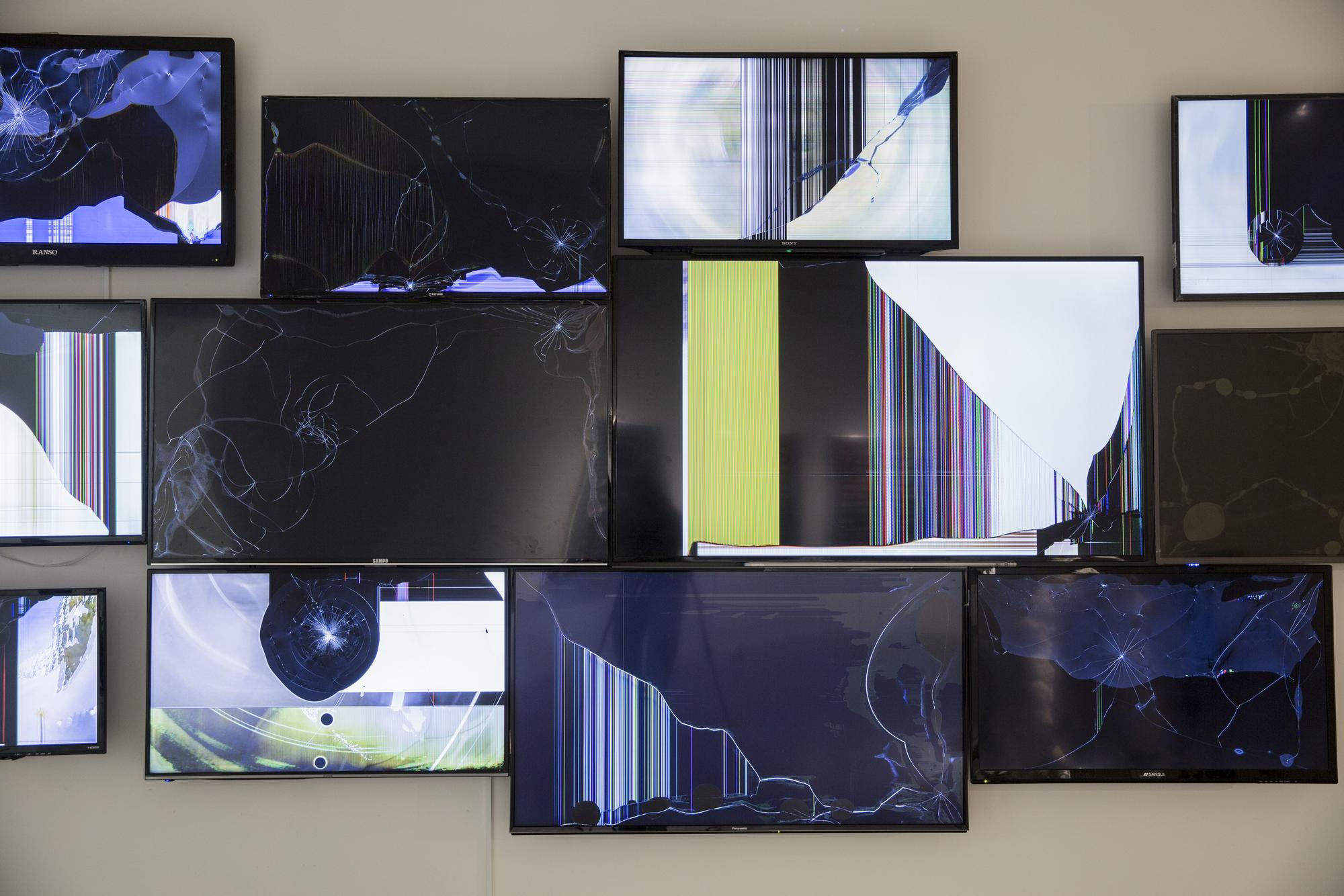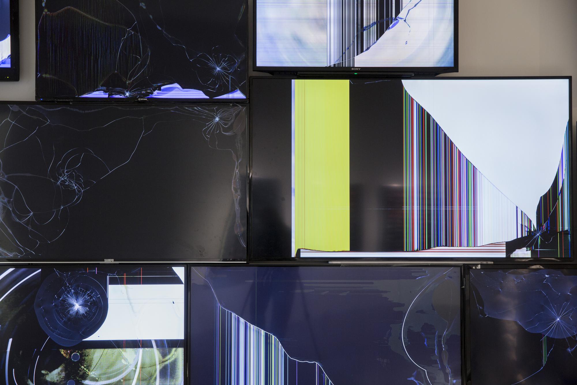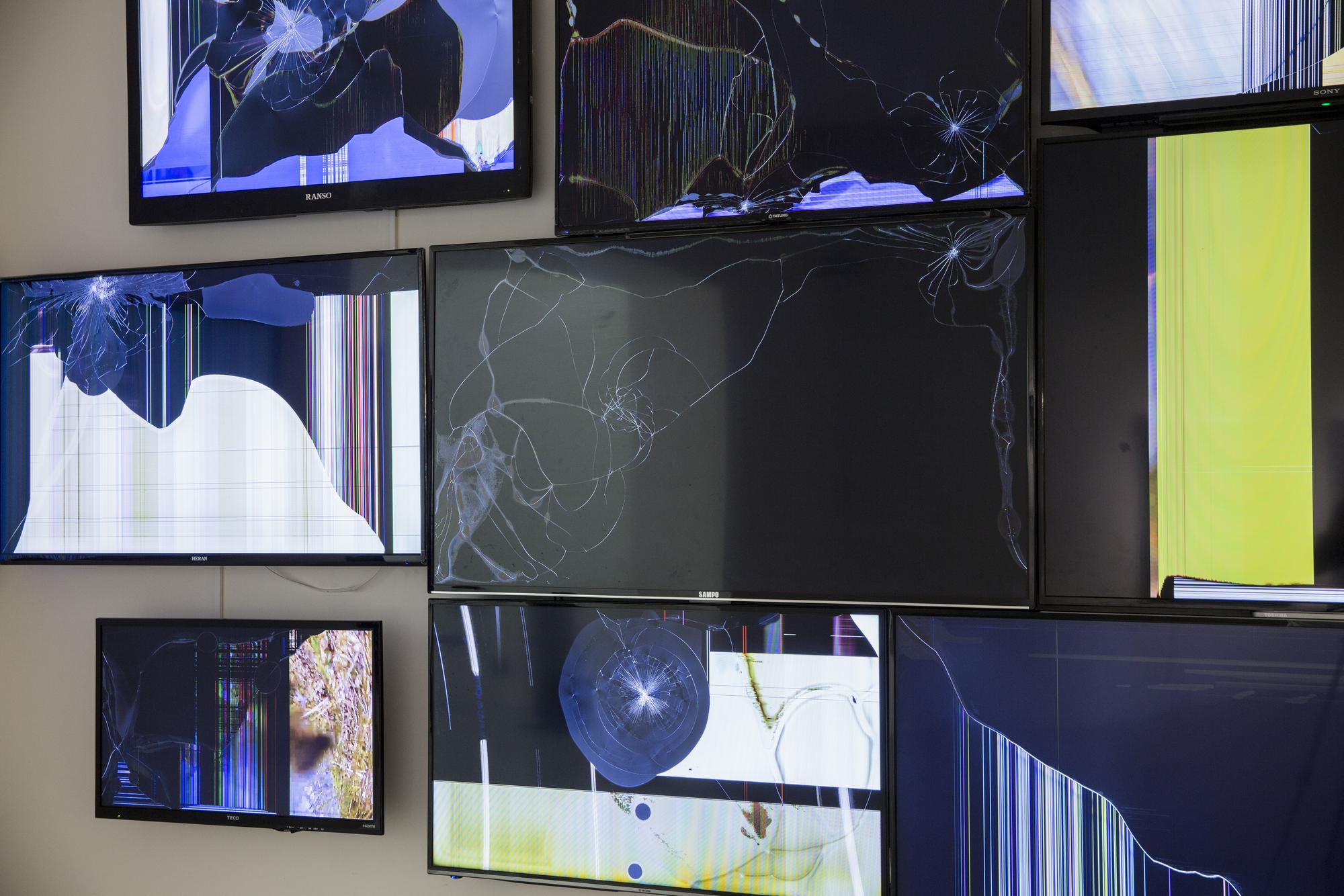 half-broken flat screen TVs, recorded and found Go Pro videos