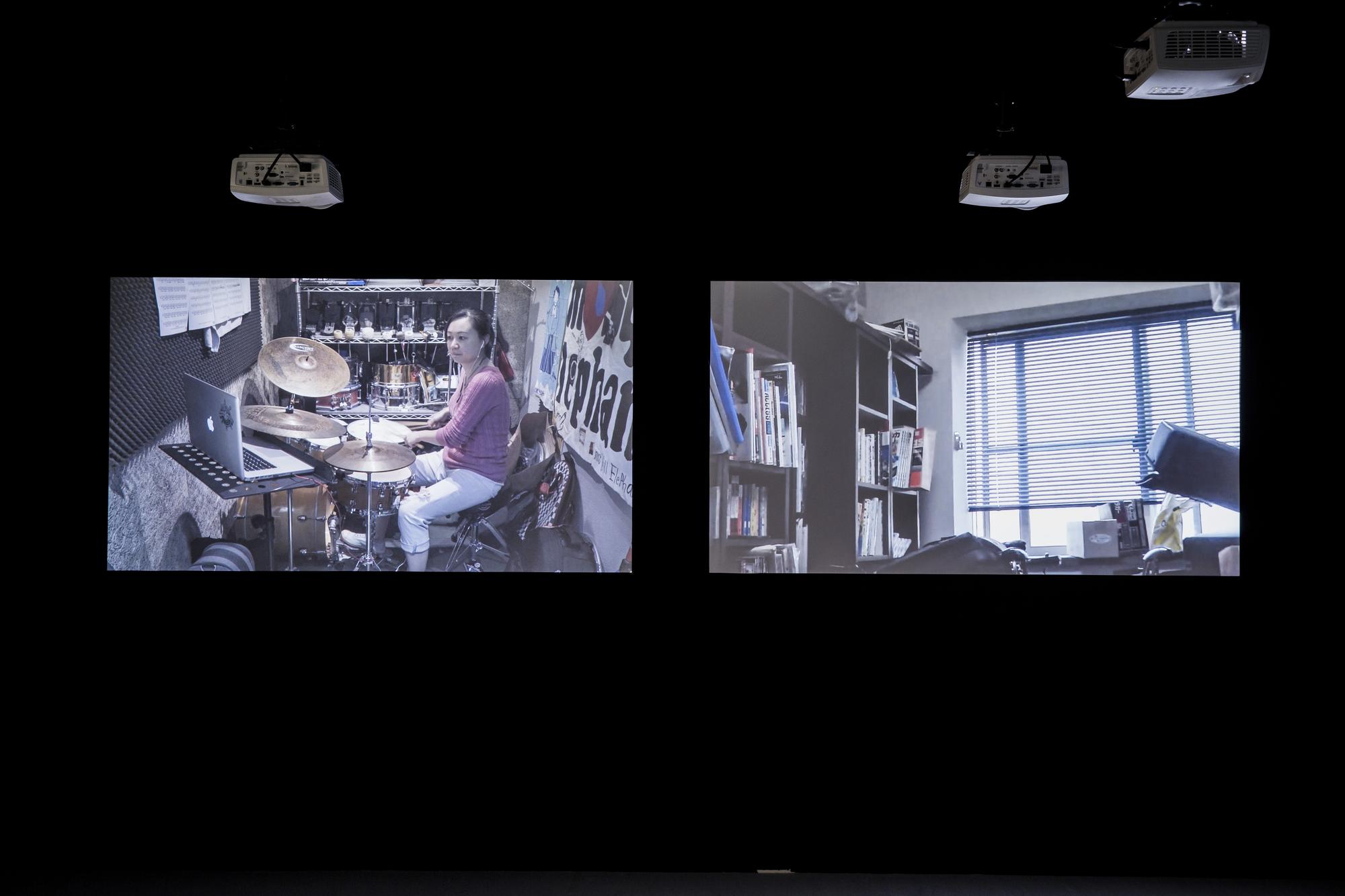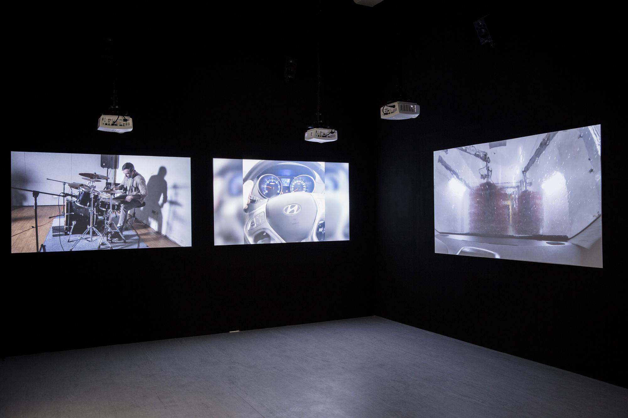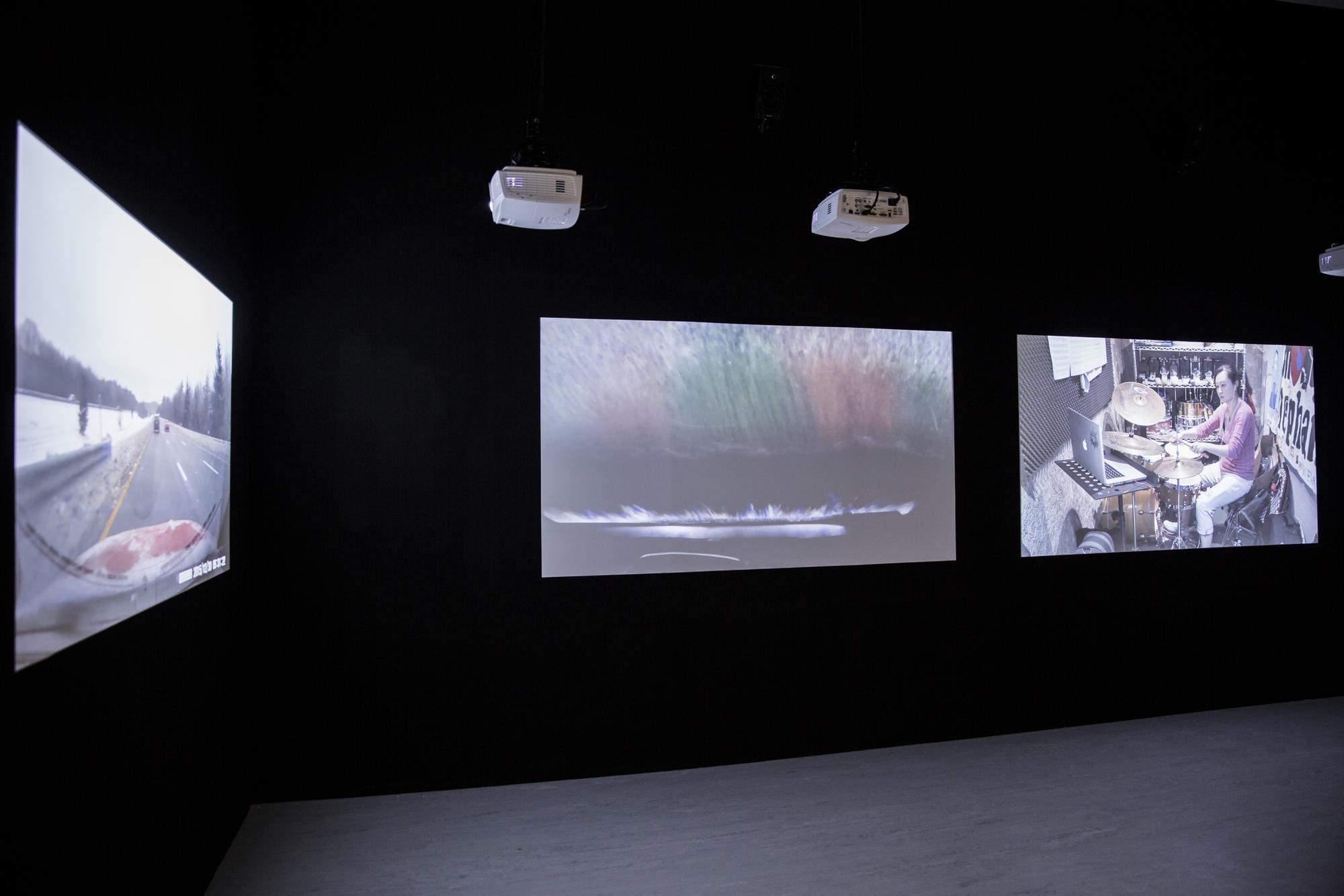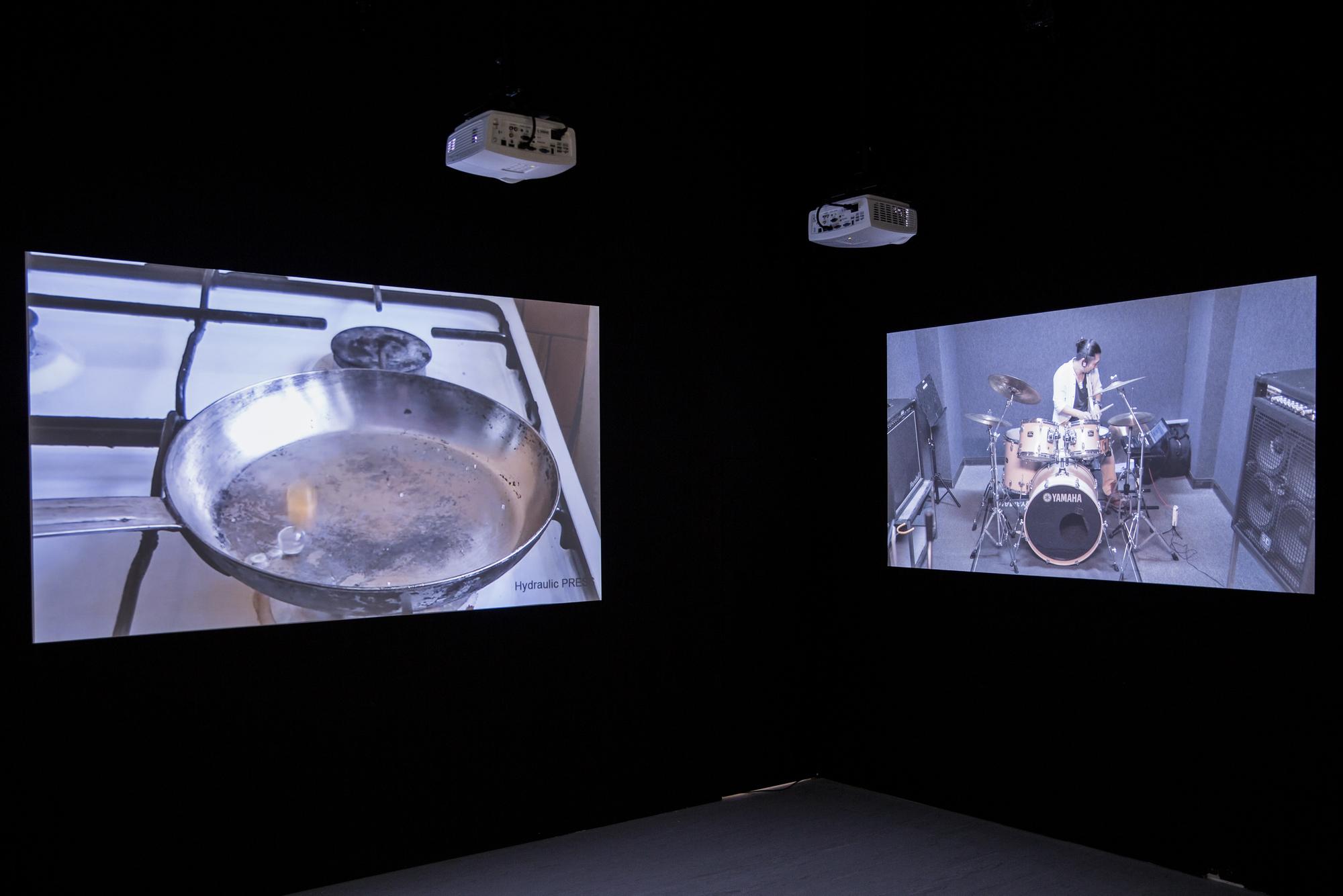 Drumming is one of the oldest forms of music, one that can be seen all across cultures from shamanic rituals to signaling devices in warfares. The act of hitting objects to make sounds is also one of the most fundamental and earliest ways of how humans understand the world around them. In Structure Study VI, three drummers are tasked with mimicking the sound of three different compilations of found youtube videos with their drums. These found videos are various seemingly random recordings of different situations in life where drum-like sounds are made, primarily through speed and impact, by interactions between objects, animals, or naturally occurring phenomenons. For example: car crashes, earthquakes, factory machines operating, mining explosions, animals running, lightning. and gun fights. In the end the original found videos and video recordings of the drummers’ interpretations through drums are projected side by side onto six screens with each with separate speakers to create a symphony of cacophony.