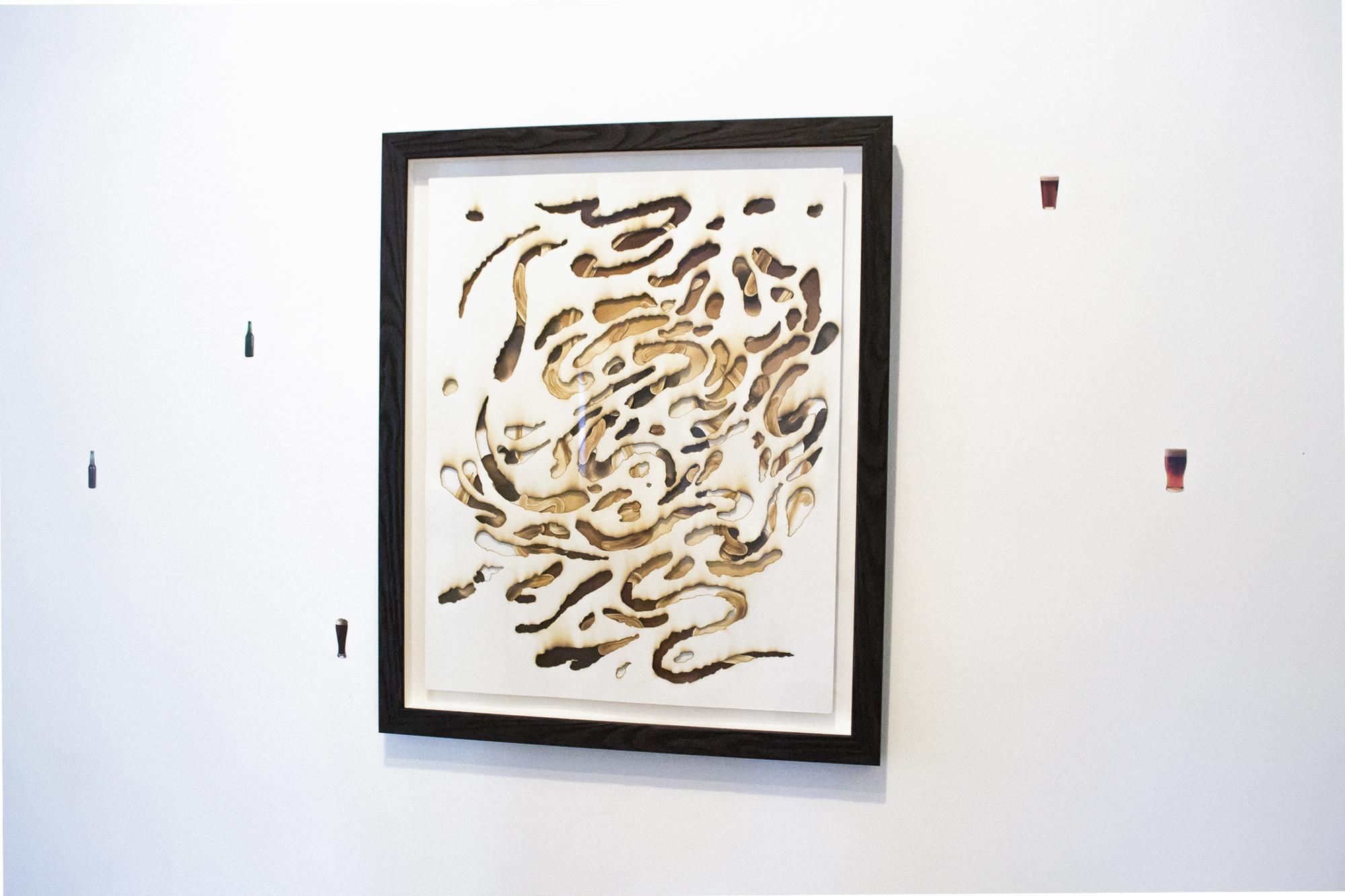 burnt lemon juice and potassium nitrate on paper, beer stickers