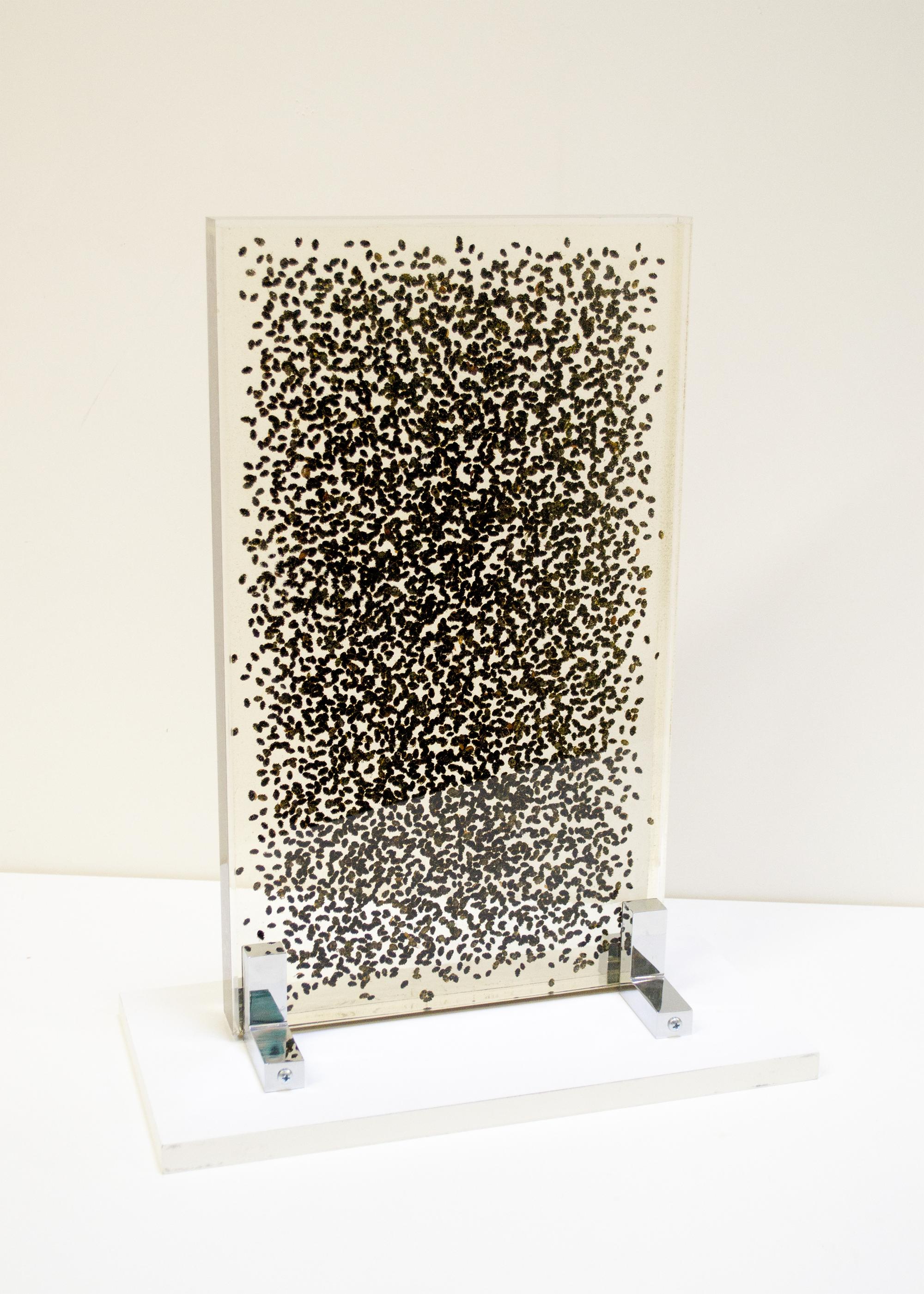ladybugs in resin inside acrylic box, wooden shelf and hardware