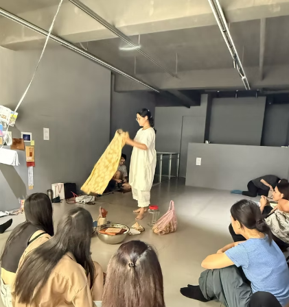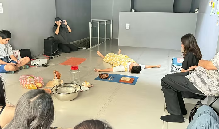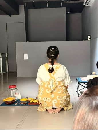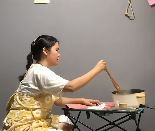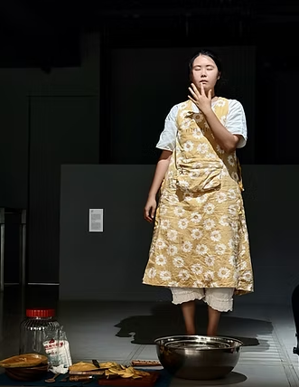 最後再由藝術家「回憶」當時參與者在此空間中料理過程中的動作、對話、走動動線、氣味,以「説菜」的概念,將自己的身體作為一個承載四段關於台北記憶的載體,從備料、使用料理器具、去皮削塊、去水、熬煮,將故事口述與料理動作進行疊和。