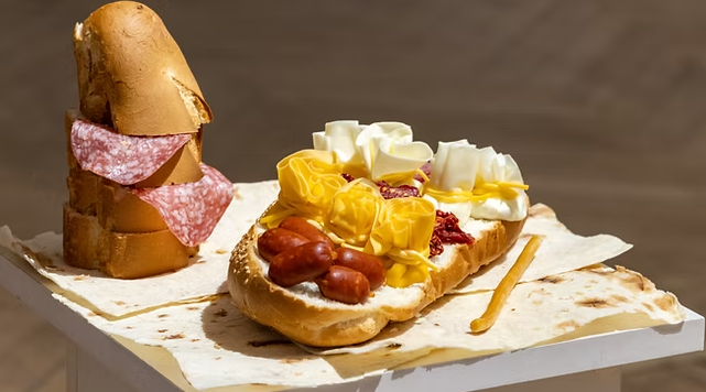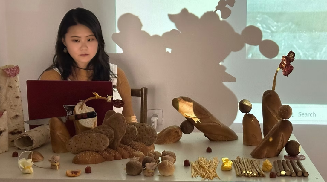 駐村期間,羅聿綺為了創作需求,經常奔走於市場、賣場與超市之間,尋覓各式當地食材。這些探索最終化為作品素材——來自亞美尼亞的各種麵包、起司與煙燻肉品,被組構為食物雕塑,呈現她對葉里溫飲食文化的感知與拼貼。