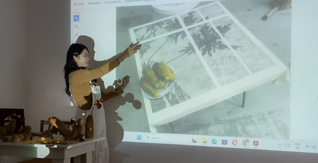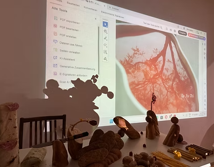 於:DDD Kunst House 的個展《HOME DOESN’T TASTE LIKE SALT》中,羅聿綺以三天、不同形式的行動,逐步推進「食物作為展覽媒介」的可能性。首日的〈藝術家座談〉中,她將食物視為雕塑、將空間轉化為臨時的展覽場域,使「對話」與「進食」在同一時刻發生。