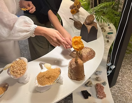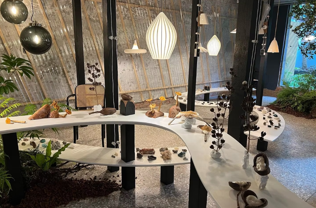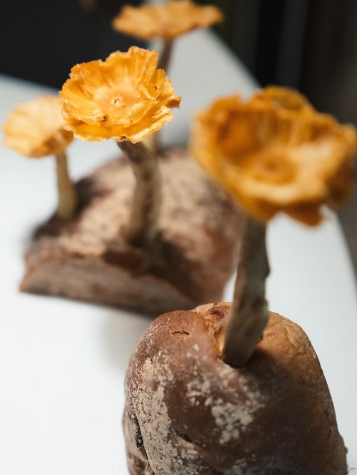 依食物創作為開端,將過往習以為常的麵包、餅乾、鳳梨乾,重新組裝成為山林之中的一花一木。