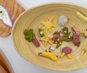 超出預期的是,碗裡除了有水筆仔、船長、螃蟹、水鳥,居然還有菸蒂 (是的,就是用糰子做成的菸蒂),其中一組甚至決定要專門捏他們今天看到河上漂浮的垃圾,並叫它垃圾船。看著他們認真的分配著誰要捏寶特瓶、誰要捏鋁罐,覺得孩子的眼果然是最真誠的呢。