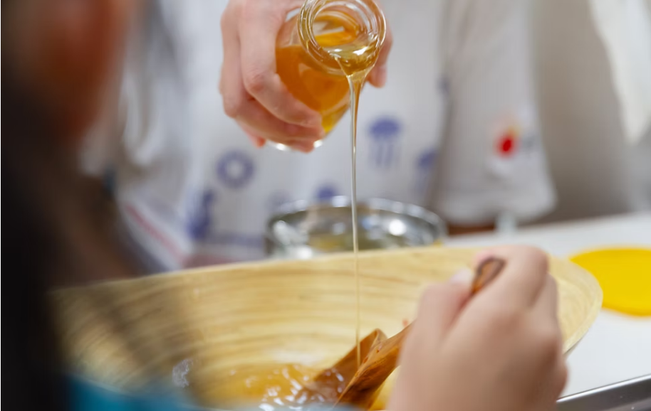 23條發散出去的支流、承載著各種經驗,上午沿著碼頭觀察水筆仔林、潮汐變化、接著搭上快艇在淡水河上航行,透過船上的航行經驗,以自己的身體作為一個「河上漂流的物」作為想像,讓身體感官隨著水波起伏,以眼、耳、鼻收藏沿路經過的風景,感受水陸生態的不同樣貌。下午將眼耳鼻的感官經驗做成一顆顆糰子,放入各組的小船、分享自己的觀察和體驗,由淡水小農市集的茶和水筆仔花蜜作為基底,以蜜香茶湯作為甜湯基底,將來自山與海河的精華結合,依序加入孩子的創作、完成海河的匯集。