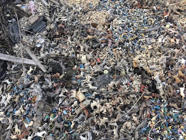 在拜訪吳中煒老家的過程中,看見了由其父親吳二曲所製作的「小人國主題樂園」,翻模剩餘的殘骸所堆積而成的小山丘,直到現在仍擺放在那片天台,慢慢剝落損壞。不同時間所發生的、看似不相關的事物堆積成團,隨著日曬雨淋,成為一座縮小版國家廢墟。
