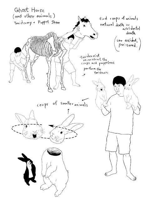 驗室裡死去的兔子。我們借了實驗兔的屍體,並邀請一位操偶師操演,返還—