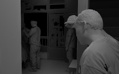 In this work, Hsu Che-Yu invites Yang Ru-Men to perform at two sites: the seashore and his house. At the seashore where he practiced bomb-making, he reenacts an operation and discusses the self-sacrifice resonance of the Japanese Red Army. In his house, he recalls a memory of a suicidal family member. The artist cooperated with a 3D scanning team—their job is to provide forensic scanning service at crime scenes—to make a digital double of Yang Ru-Men. Hsu made a digital scan of the architectural structure of Yang Ru-Men’s house. With these digital models, the artist reconstructs the bomb maker’s personal memories virtually.