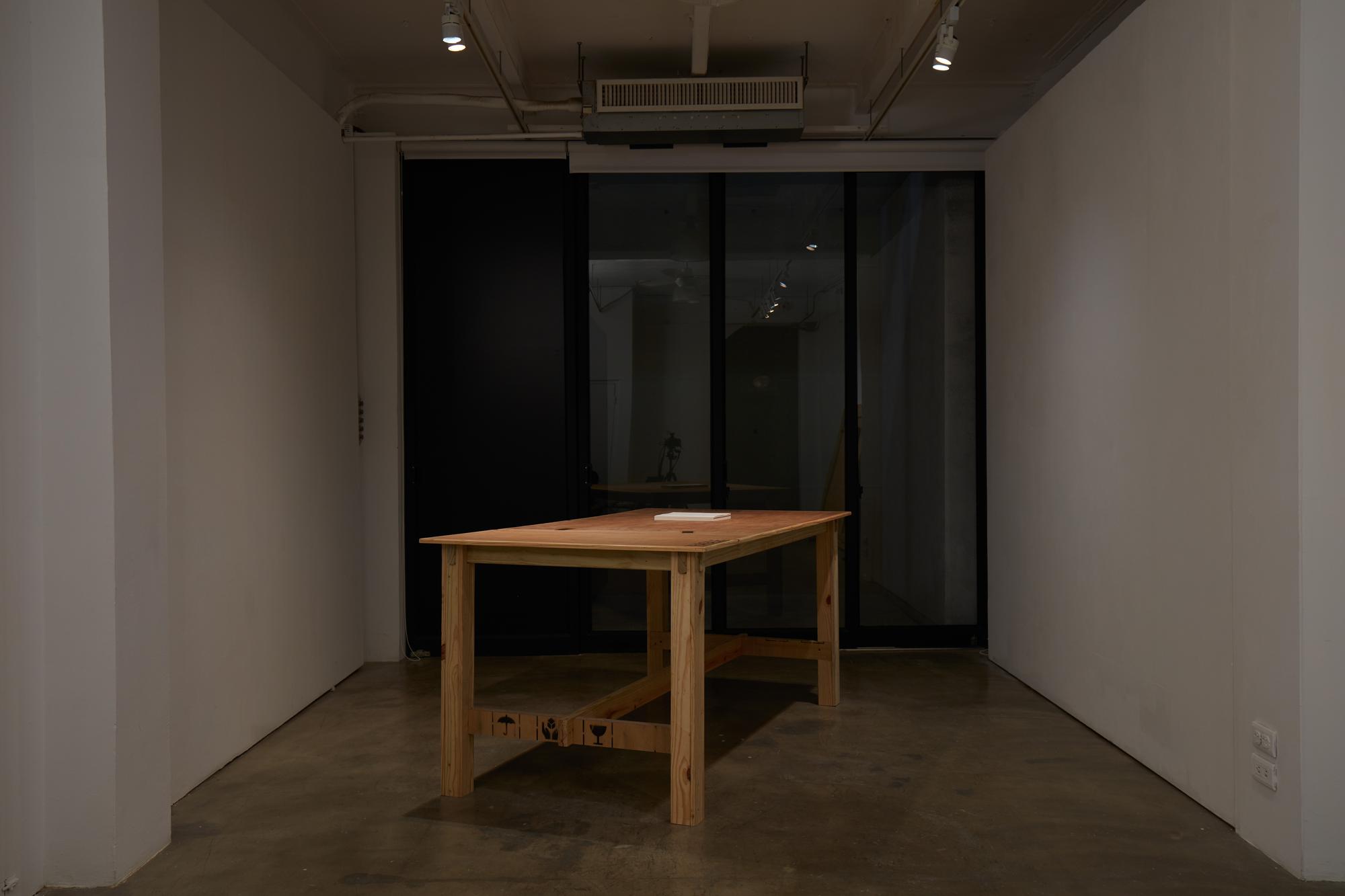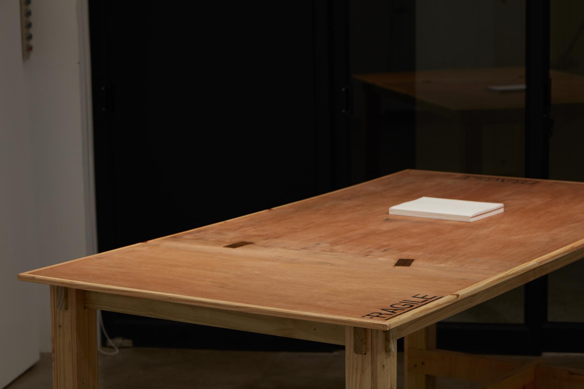 我將《谷線》本次展覽的作品運輸箱,再製成一個我想像中的書桌、工作桌或是一個可供閱讀的平台。