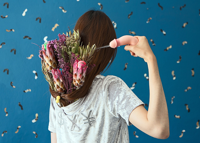 “ Sexy? Easy! ”這系列作品靈感源自於“sexy”和“easy”二字。鄭婷運用食物、植物、人造器具和生活物件進行創作,打造出一幕幕奇幻且深具魅力,同時卻又帶著一絲諷刺意味的超現實場景。 她企圖挑戰一般人對「性感」、「情色」的刻板印象與概念。在運用大膽且明亮的色彩的同時,她也企圖將令人不安與不對勁的視覺感受帶入這些俏皮有趣的畫面中。因為對於鄭婷來說,性感、可愛或令人不安總是在一線之隔。