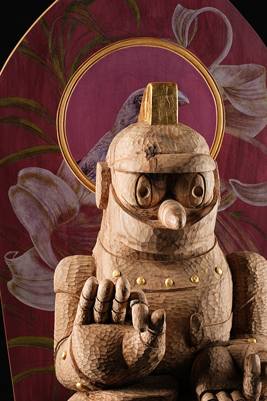 楊茂林的創作出自於自身的需求所驅動,忠實於自己的生命史:「我自小就愛看漫畫,卡漫與電影英雄角色,都是拯救地球、維護宇宙和世界和平,其實就某些意義上,他們就像孩子心中的神佛,無私無悔犧牲自己保護世人。」這些深植於個人童稚記憶中的卡通,與普羅大眾喜愛的通俗文化,乃至民間傳統文化的宗教信仰,透過藝術家的創作語彙充分體現在卡漫神祇立體雕塑作品上。