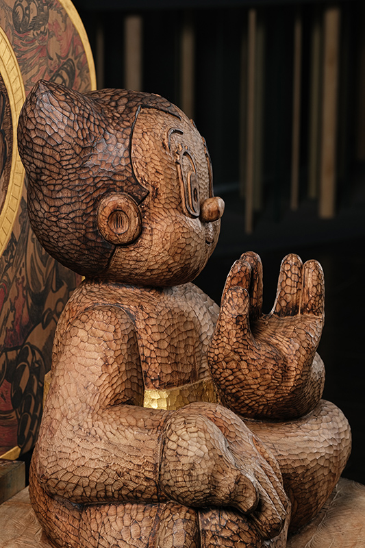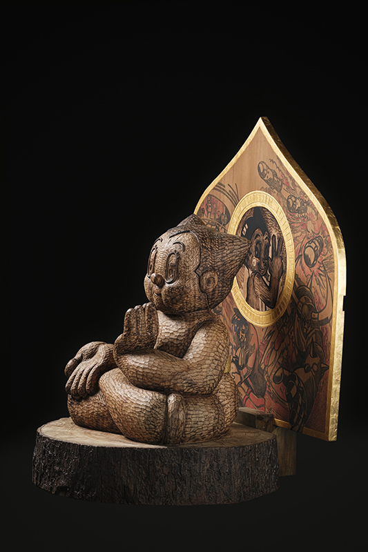楊茂林的創作出自於自身的需求所驅動,忠實於自己的生命史:「我自小就愛看漫畫,卡漫與電影英雄角色,都是拯救地球、維護宇宙和世界和平,其實就某些意義上,他們就像孩子心中的神佛,無私無悔犧牲自己保護世人。」這些深植於個人童稚記憶中的卡通,與普羅大眾喜愛的通俗文化,乃至民間傳統文化的宗教信仰,透過藝術家的創作語彙充分體現在卡漫神祇立體雕塑作品上。