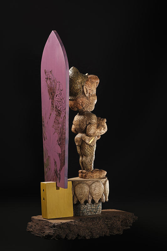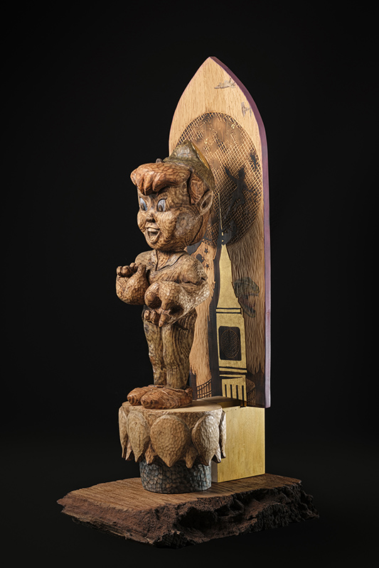 楊茂林的創作出自於自身的需求所驅動,忠實於自己的生命史:「我自小就愛看漫畫,卡漫與電影英雄角色,都是拯救地球、維護宇宙和世界和平,其實就某些意義上,他們就像孩子心中的神佛,無私無悔犧牲自己保護世人。」這些深植於個人童稚記憶中的卡通,與普羅大眾喜愛的通俗文化,乃至民間傳統文化的宗教信仰,透過藝術家的創作語彙充分體現在卡漫神祇立體雕塑作品上。