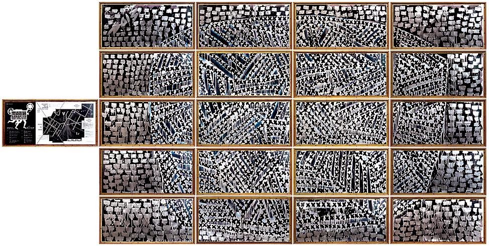 物的理│用白色底膠塗抹20張素帆布再縫併成一塊畫面