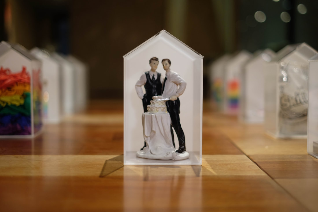 2017年同志婚姻合法化議題之靈魂人物祁家威先生申請同性婚姻釋憲,因而司法院大法官召開憲法法庭進行討論,最終結果判決違憲,兩年內同志婚姻將能合法。本計劃透過現場活動與網路,與民眾募集日常中有關彩虹的物件,同時也在自己的日常生活中收集關於彩虹的物件。試圖以此建構對於彩虹的意象,製造這關於家的聯想與關聯。