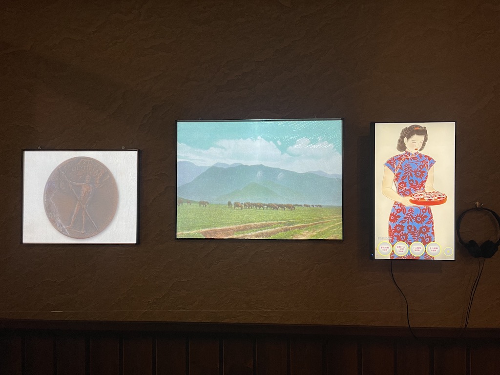牆上的立面畫框以投影與互動螢幕並陳,呈現1930年代當時的老海報與物件,以後製的動畫效果重新呈現,如同哈利波特電影中,畫框裡頭的人物也會有動作與變化。