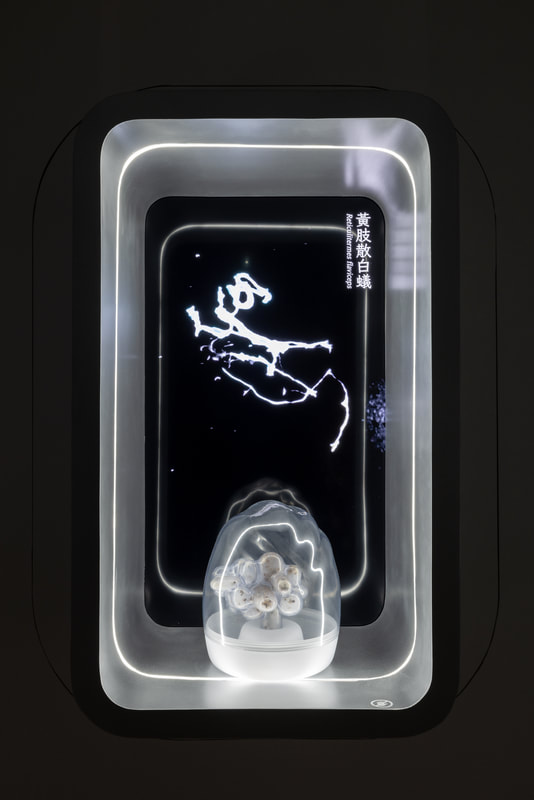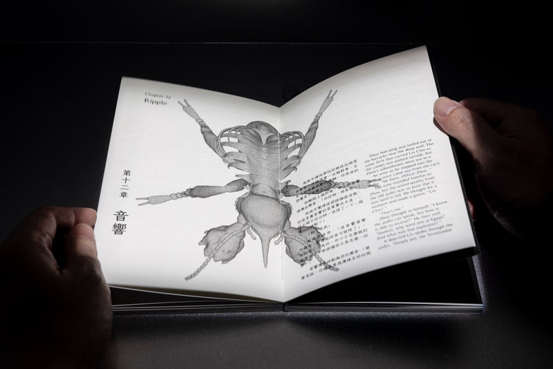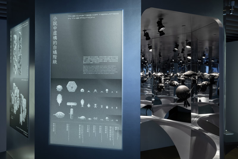 Artist Kuang-Yi Ku collaborates with scientists who study the eusocial insect of termites to jointly establish a fictional scenario of an interspecies future. In this futuristic narrative based on a knowledge of termite biology, the artist and scientists have created a fictional social structure for termites where nine social strata have been identified as cornerstones for further classification. From this, more than 1,000 different classes are further derived. In this speculative evolution they have designed, human beings and termites exist in multiple complex relationships of enmity and friendship. At the conclusion in this tale of science fiction, a possible structure of mutually beneficial symbiosis is formed.