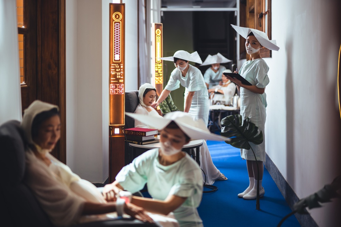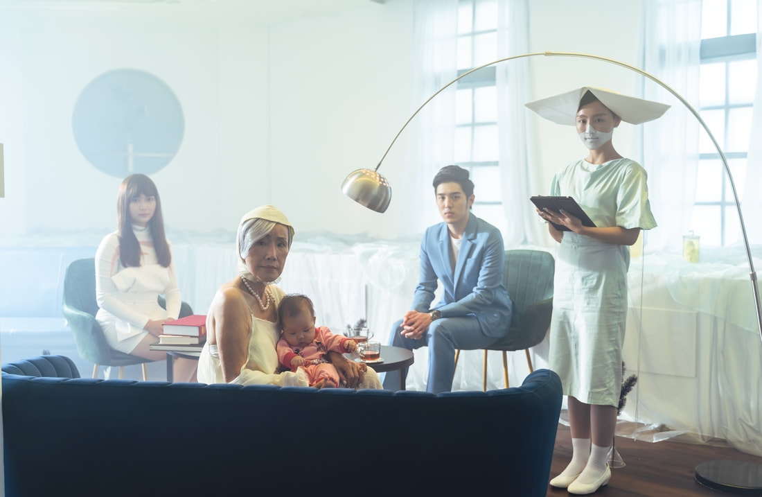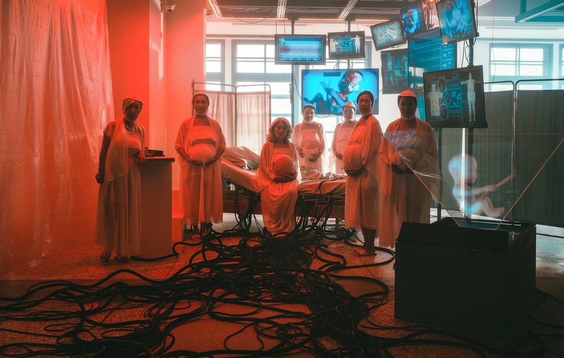 In countries where surrogate mothers are legal, there have been a few recent incidences where the daughters or daughters-in-law were infertile so that their mothers agreed to be the surrogate mothers of their grandchildren. This project proposes the possibility of giving this option to women who are at their pregnancy ages but wish to focus on their careers, so that their eggs and their partners’ sperms can be fertilized in vitro and placed in the wombs of their mothers or mothers-in-law to give birth to their offspring. In this scenario, women can focus on their careers, and their retired women mothers, who no longer need to worry about their jobs, can fully focused on their pregnancies. In this system, every woman in every family can ask the willingness of their mothers to become pregnant for them; when they retire, they can do their daughters a favor to become pregnant for their grandchildren. Generations after generations of women can focus on their careers when they are around 30 years old, and give birth to their grandchildren when they are 60. Grandmom Mom constructs a series of future scenarios to explore the ethical and social issues associated with reproduction technologies of future human societies. It also tries to dig deep into the complicated and contradictory emotions of parent-child relationships.
