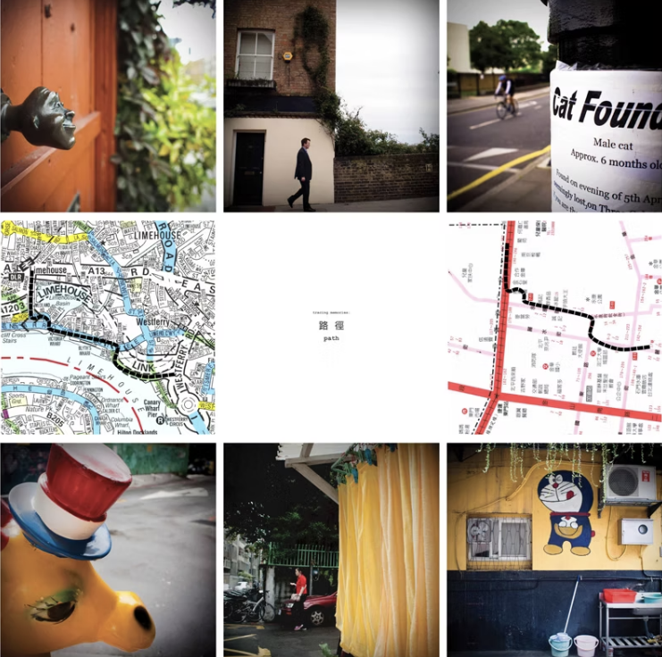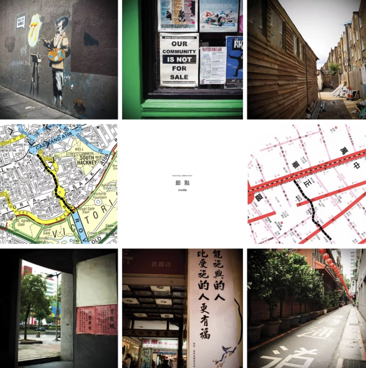 在兩個不同的起點之間來往,城市和城市空間的轉換,究竟「看見」了什麼? 於是產生了這個作品,記憶描途:我用在倫敦的路線,帶領在台北的視線。
