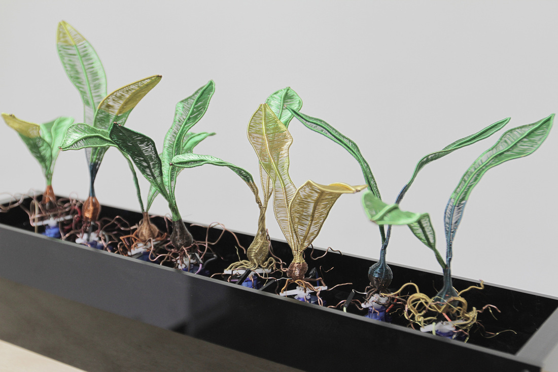 金屬編織植物、程式控制、超音頗感測、壓克力