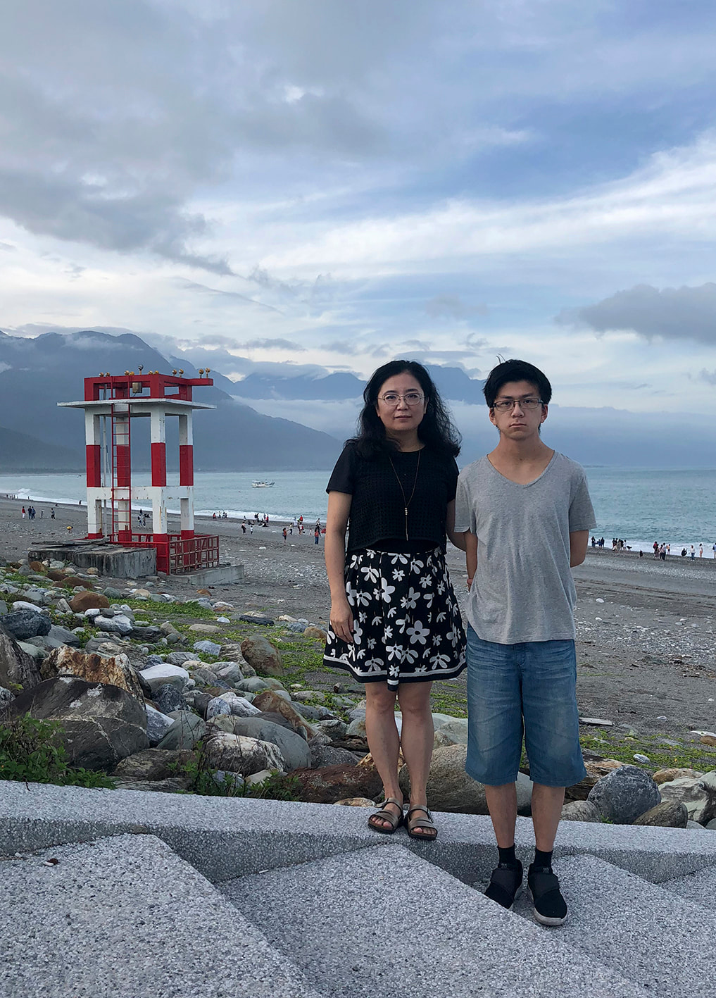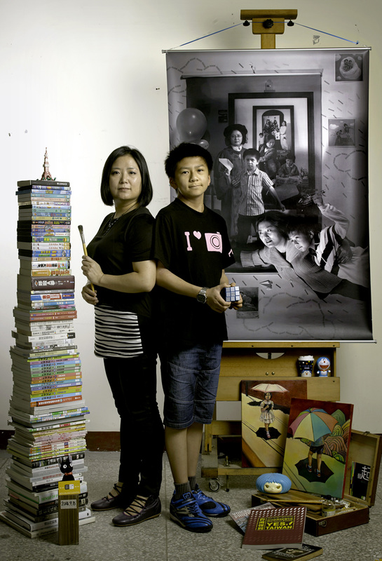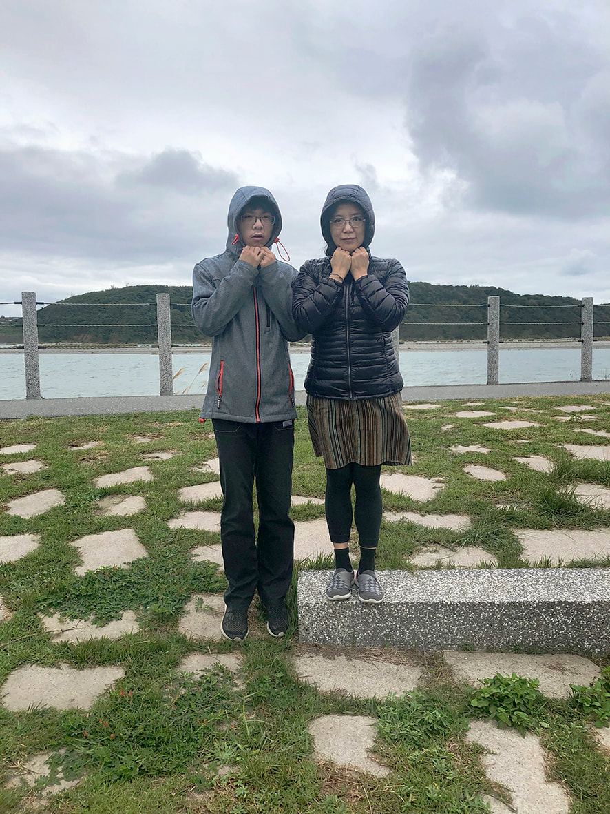 我嘗試以我與兒子間視覺上的「一樣高」,來表達我對於兒子在對待性別議題上的期許。我認為在臺灣傳統上享有優勢的男性長子身份的他,擁有平等且互為尊重的態度,顯得特別重要。我不希望他因自己的性別而自大自傲或充滿責任的壓力,更不希望我體驗到的男高女低的性別差別待遇,在他那一代繼續發生。當兒子超越我的身高時,換我們一起尋找讓我可以跟他一樣高的場景來拍攝,這代表身為媽媽的我,不放棄學習與成長,仍然重視我們互為尊重的母子關係。它同時也提醒自己不可倚老賣老,需要放下身段看看並參與屬於兒子的新時代。
