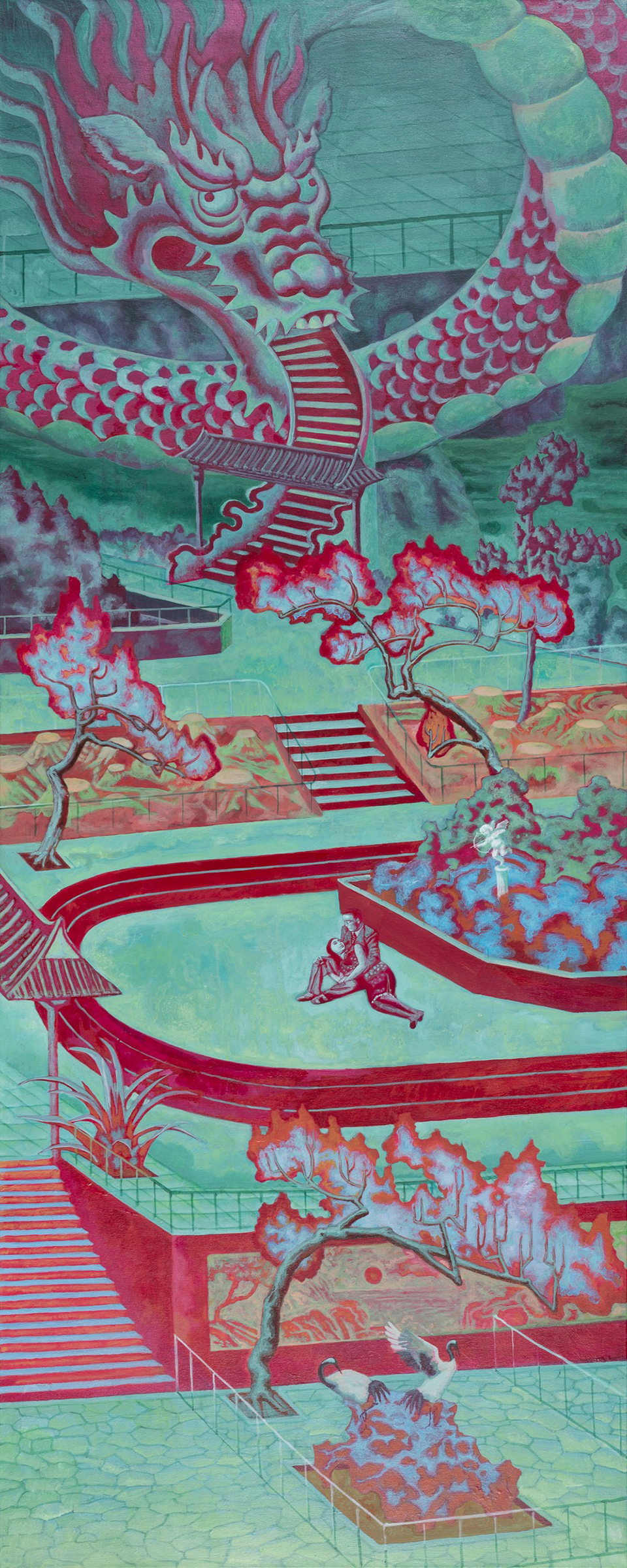 孫培懋,出生於臺灣臺北,畢業於臺北藝術大學美術創作研究所繪畫組,2016下半年於中央美術學院進行為期半年的交換學生計畫。作品彌漫著一股奇詭的華麗,顯示了「類電影」的戲劇緊張感。人工造景是孫培懋覺得相當特殊而有趣的人文產物,這些造景也建構了對自己成長土地的第一印象。穿梭於彷佛電影場景的複雜空間,感受畫…