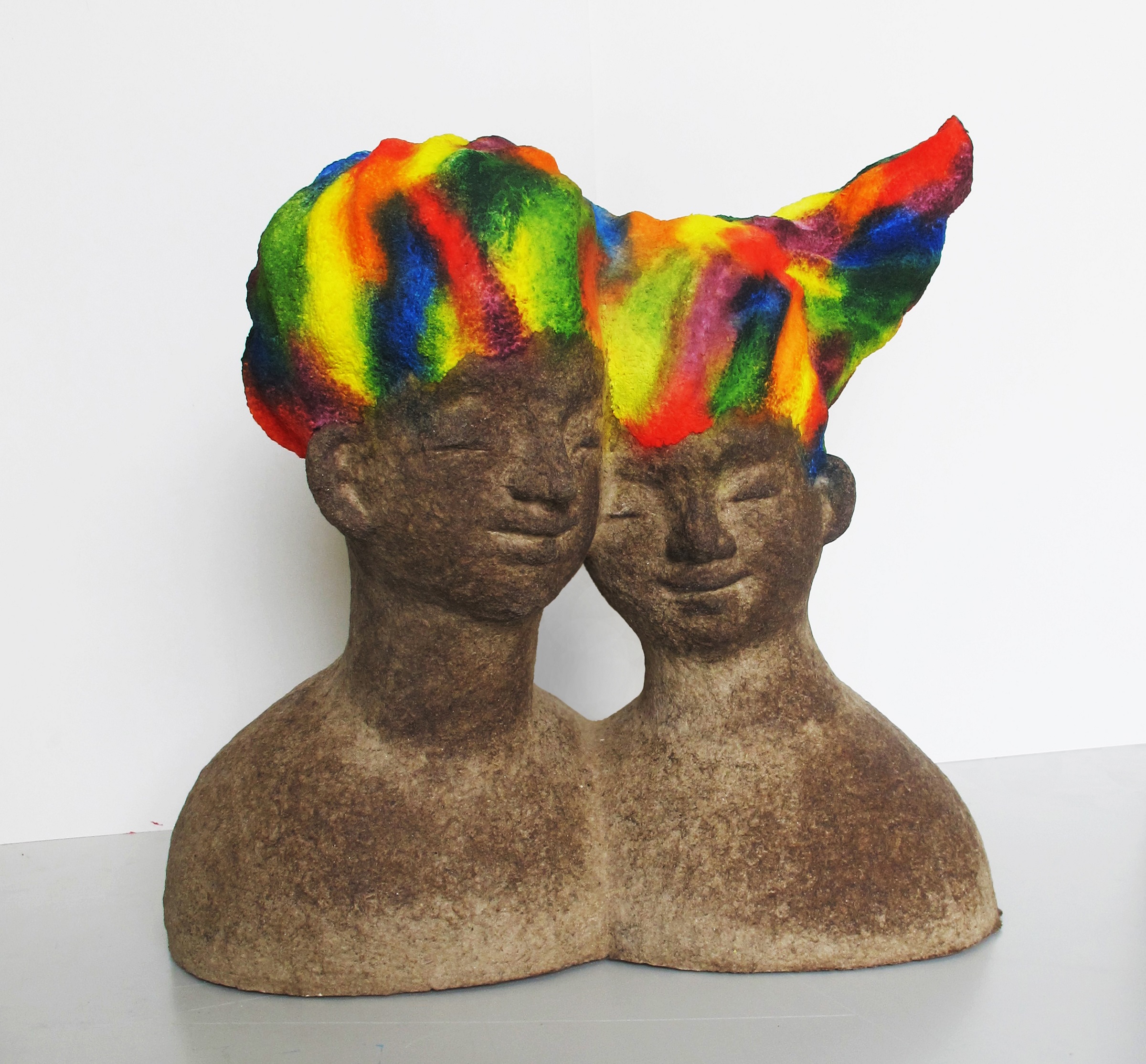 蔡潔莘2010年畢業於國立臺南藝術大學造形藝術研究所(MFA),擅長以紙漿雕塑傳遞樸實、溫潤的情感,注重當代快速繁忙的生活基調底下,人與人之間的情感交流。相較一般雕塑常見的石材與銅雕,蔡潔莘選擇了更具溫度與柔軟的紙漿作為創作媒材。她關注人類獨有的情緒表達方式,以紙漿捏塑牽手、微笑等肢體動作,傳遞存在…