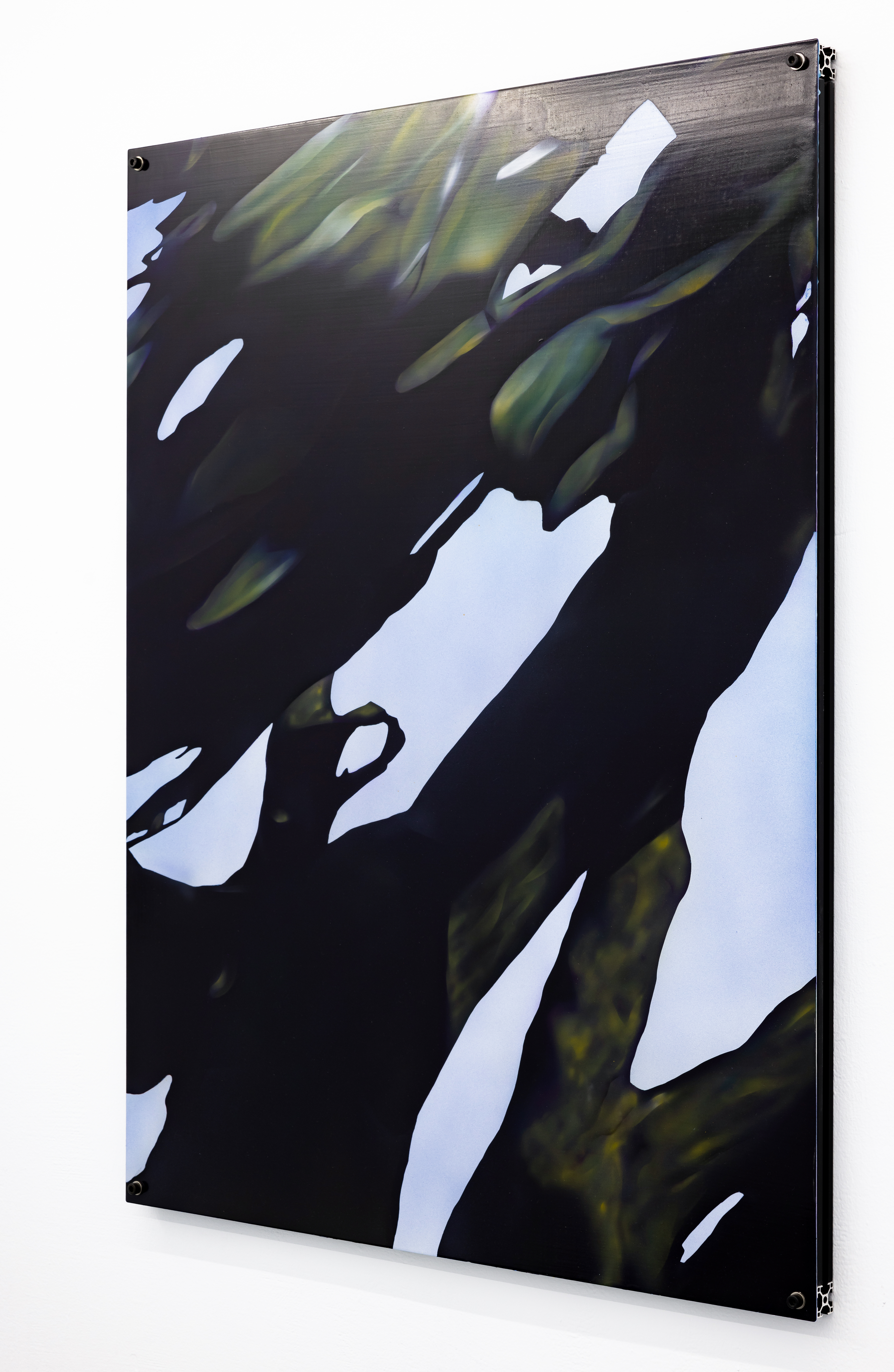 張般源的創作關注人在數位生活中,情感經驗與身體感知的交互形塑,探索身體與日常經驗如何被影像、資訊與數據切割、重組,懸浮於虛實之間。張般源試圖捕捉日常中社群平台、醫療紀錄、數位檔案與情感交流對身體形貌認知與生活感知的塑造,並透過跨媒材將這些元素進行重組與壓縮,呈現資訊過度堆疊下的黏稠、延遲與失重感。作品並非單純回應技術媒介,而是對人在當代生活中,那種趨近碎片卻又隱隱相連的感性經驗,以及在抽象化資訊場域中生成的自我形體與情感意象進行想像的形塑,其浮動與出神的狀態留下開放的感知空間。