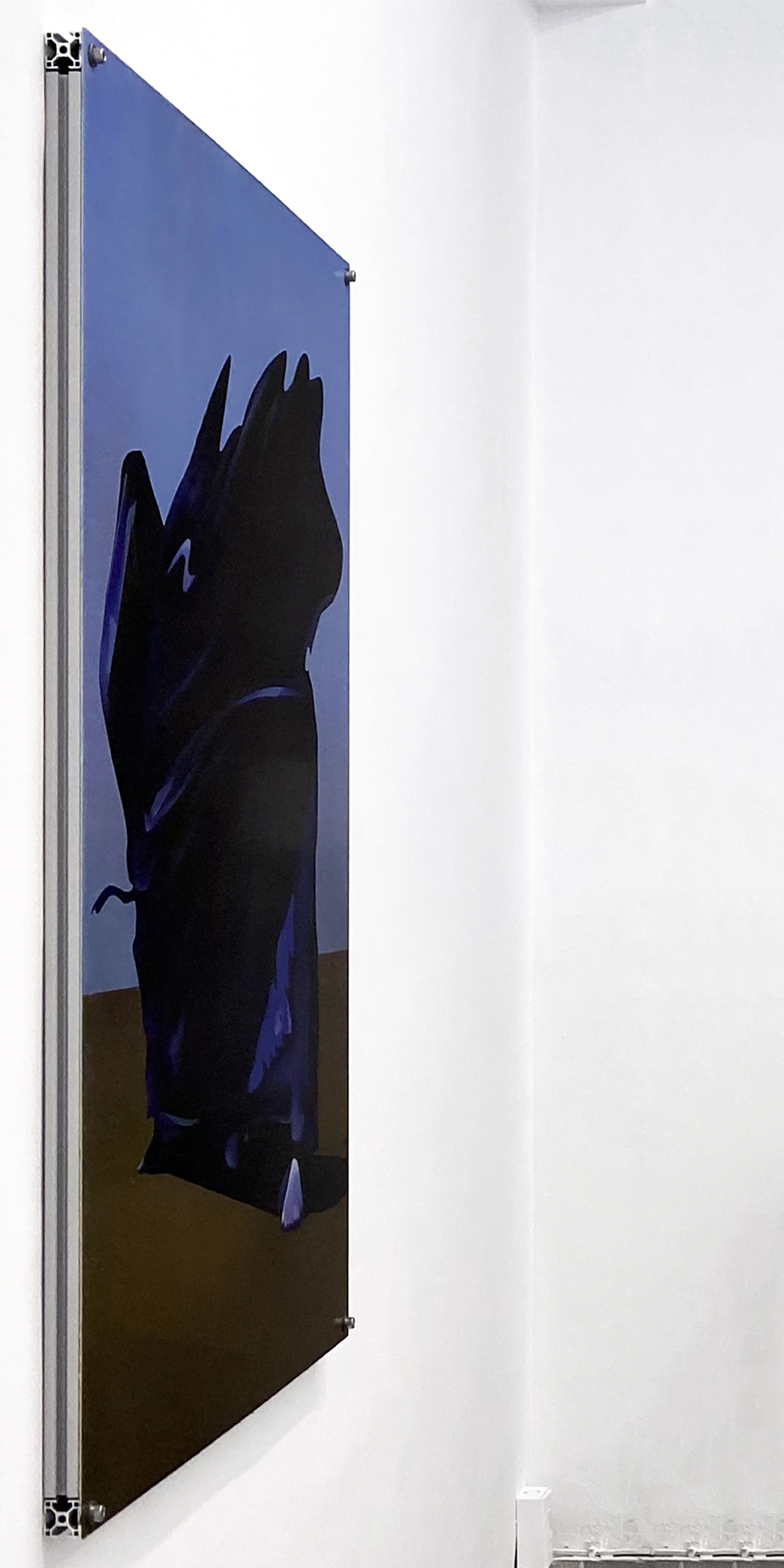 張般源的創作關注人在數位生活中,情感經驗與身體感知的交互形塑,探索身體與日常經驗如何被影像、資訊與數據切割、重組,懸浮於虛實之間。張般源試圖捕捉日常中社群平台、醫療紀錄、數位檔案與情感交流對身體形貌認知與生活感知的塑造,並透過跨媒材將這些元素進行重組與壓縮,呈現資訊過度堆疊下的黏稠、延遲與失重感。作品並非單純回應技術媒介,而是對人在當代生活中,那種趨近碎片卻又隱隱相連的感性經驗,以及在抽象化資訊場域中生成的自我形體與情感意象進行想像的形塑,其浮動與出神的狀態留下開放的感知空間。