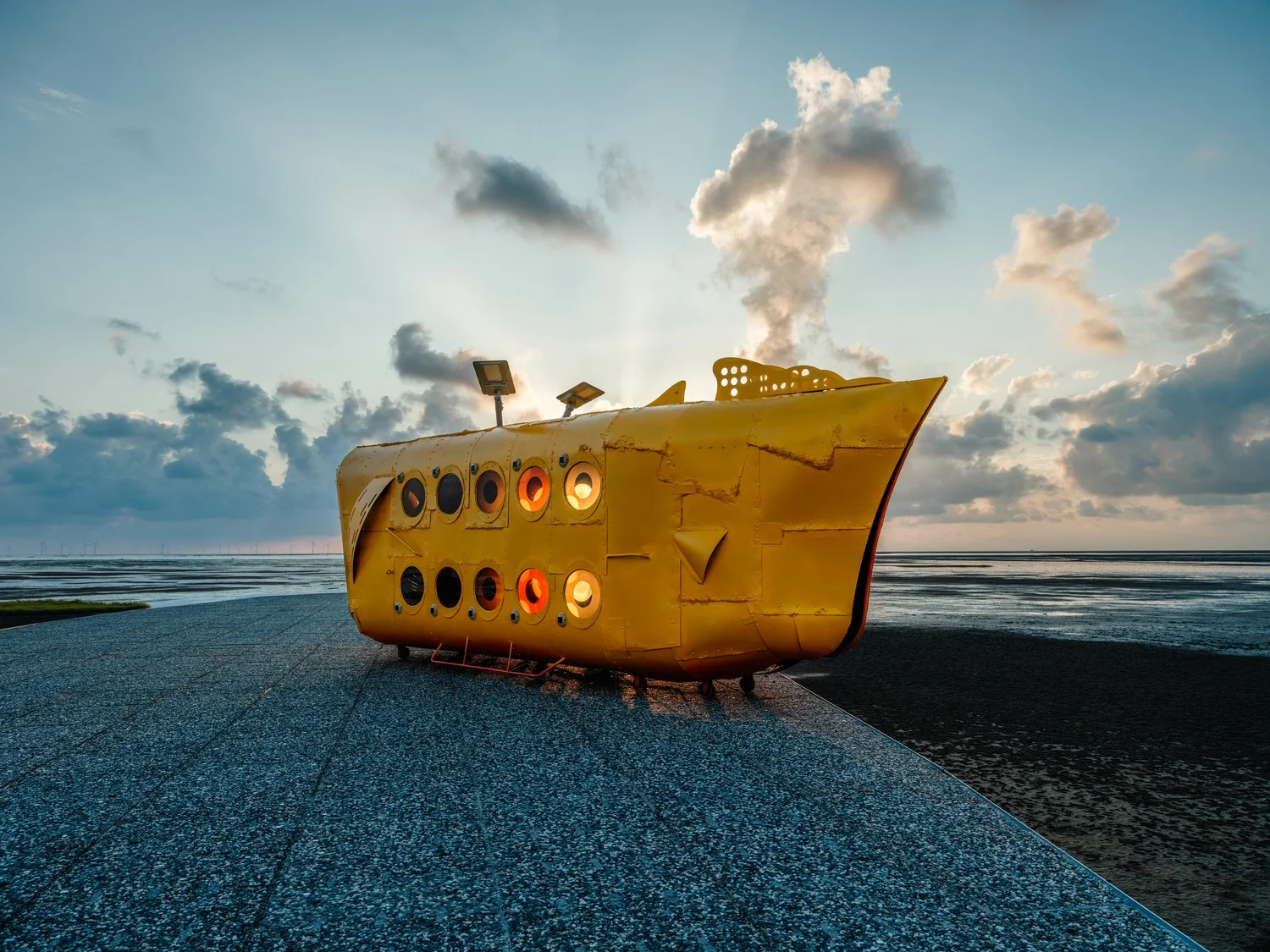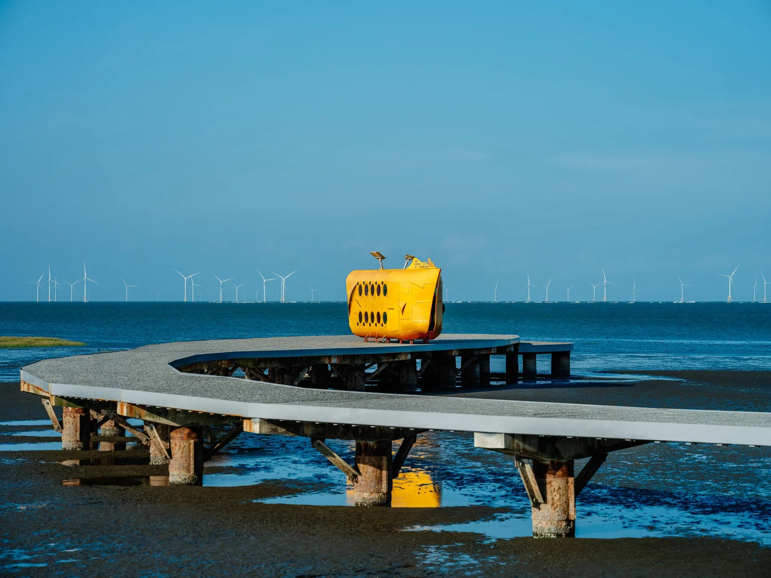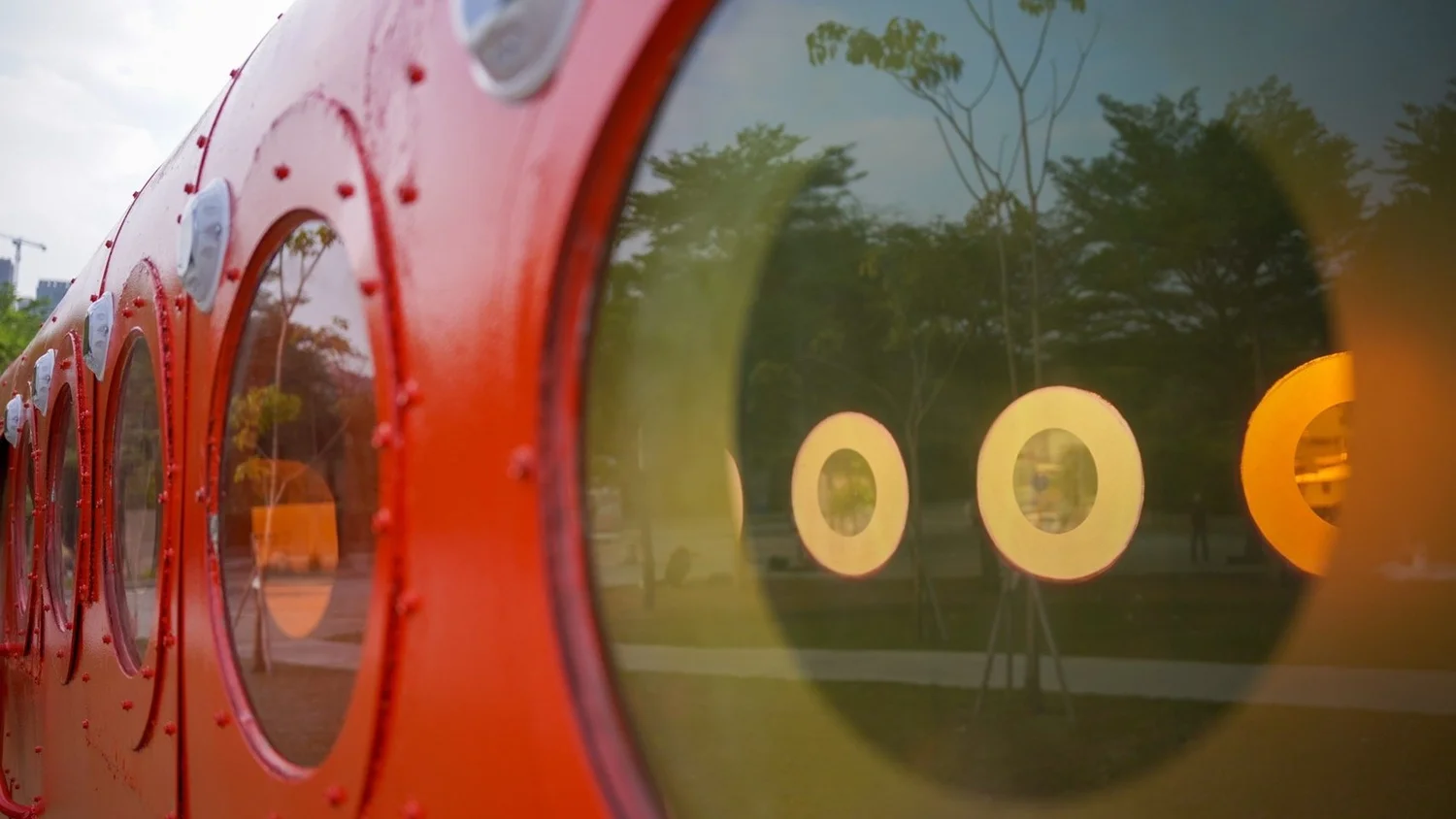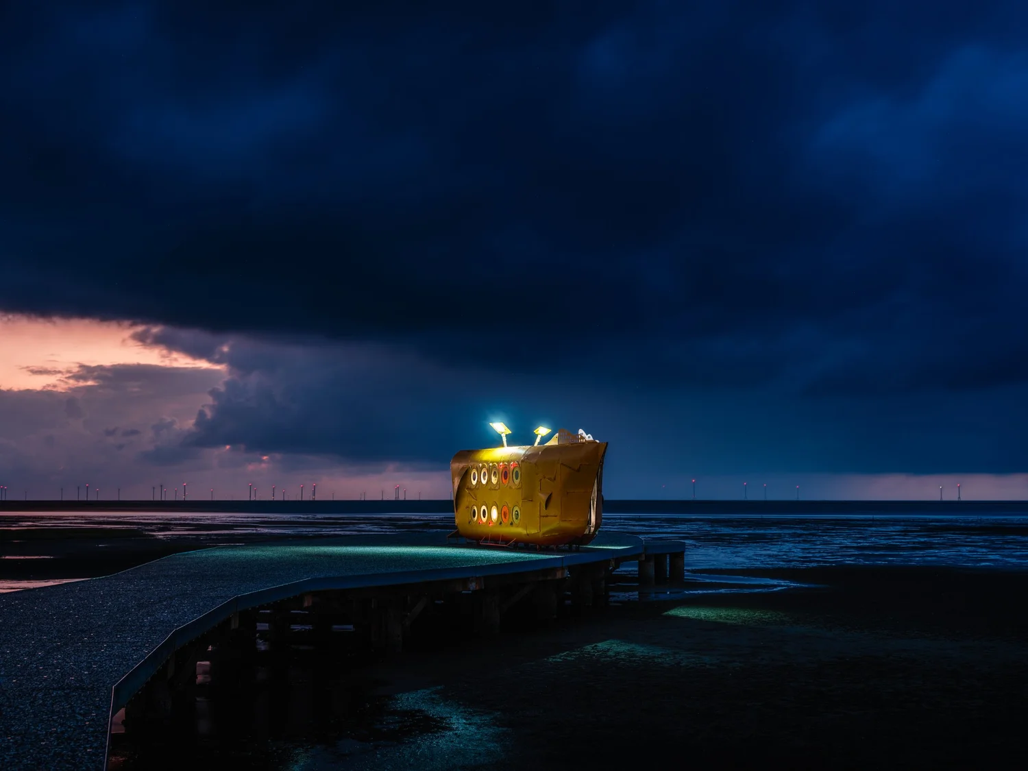 打造穿梭時光的精神載具。提供由內和由外觀看皆不同的光影風景給觀者,外觀像是能濳入深海、飛行太空、遊歷異世界的機器,穿戴著奇異的想像空間。能將前方艙門打開進入內部暗空間觀看光影,也能從外部彩色圓窗看到內部,內部為橋梁般的木製空間,可讓視線延伸到艙尾再到艙外,進入屬於自己私密恢弘的想像領域。