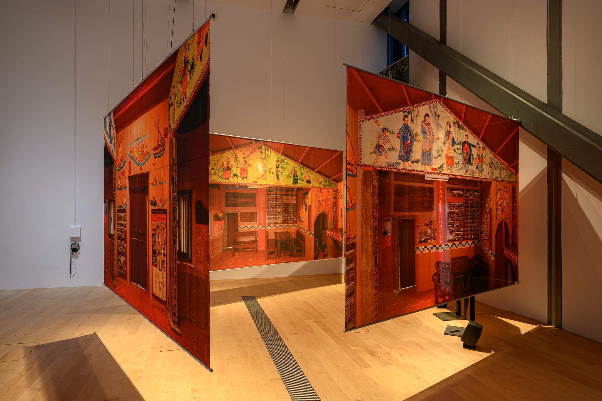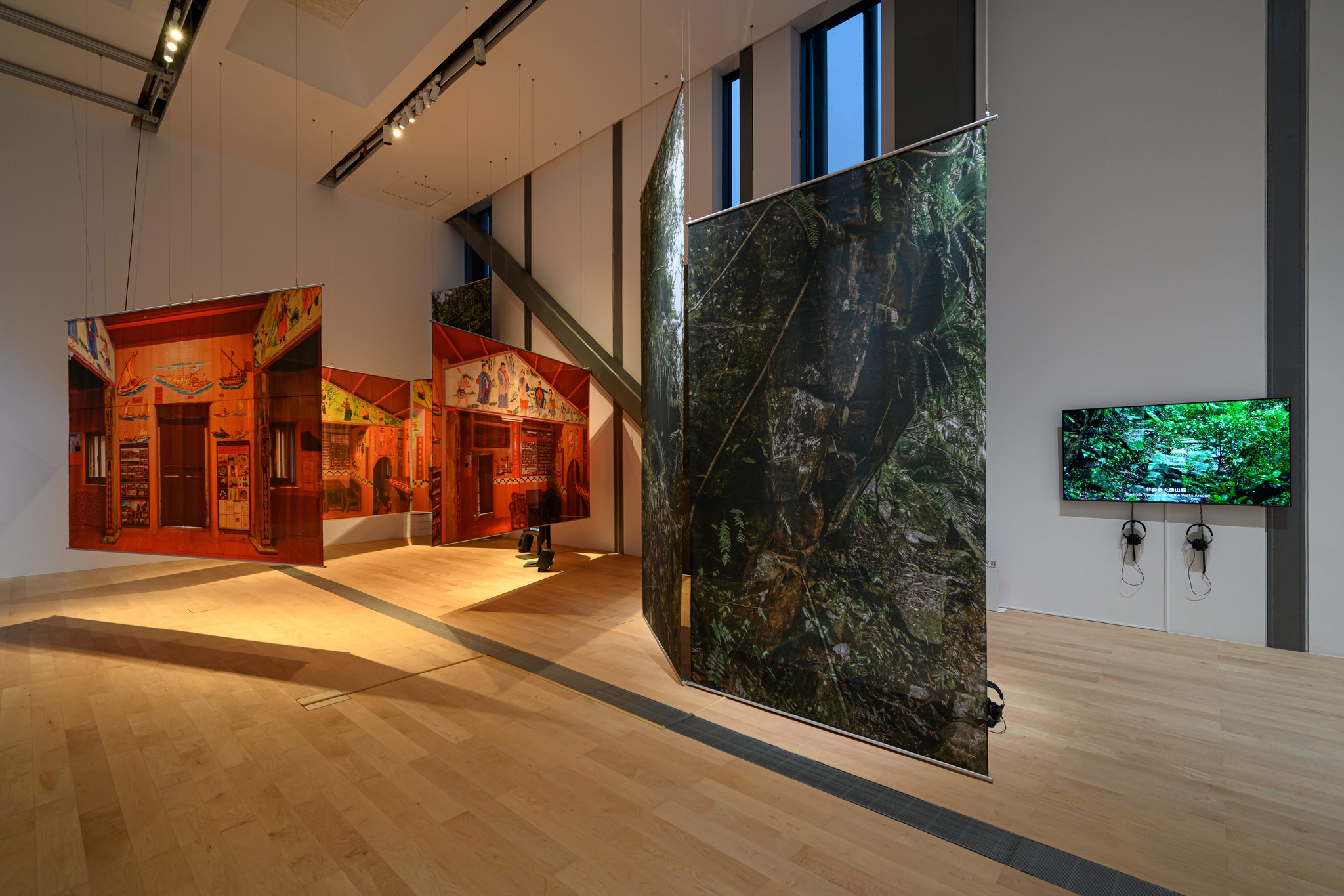 《焱族:重返登陸地》以半透明紗質布料構築出光影交疊的場域,交織地景、詩句、圖繪、檔案與物件,形成如星叢般的敘事。作品追溯北海岸原住民的歷史,以 1994 年核四廠外的「重返登陸地」行動為背景,展開一場實驗考古。 創作團隊走訪三貂角、海上船隻與陸地望向海洋的三個觀點,重訪山西祠,並訪談耆老林勝義。他們在原民神話、科幻敘事與歷史記憶之間穿梭,探勘「登陸地」神話背後的物質、社會與權力條件。以1994年核四廠外的「重返登陸地」行動為背景,展開實驗考古學。訪談耆老林勝義,並從三貂角、海上與陸地視角回應歷史。他們重訪山西同,探討人類與非人類的祖源傳說,並挖掘「登陸地」神話的物質與社會權力條件,融合詩性與後設敘事,以原住民神話與科幻解構歷史,嘗試提煉「原民未來主義」的可能性。