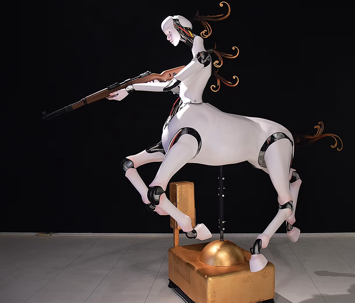 玻璃纖維、機件、不鏽鋼雷切、金箔、電動音樂、Kar-98K步槍