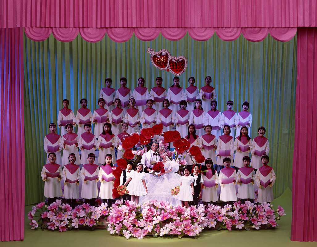 《結婚進行式》是一系列關於現代婚姻的作品,創作於1996年至1997年間,當時藝術家尚未結婚。作品以當時台灣年輕女性共通童年回憶的美式玩具–「芭比與肯尼」為主角,企圖以具有完美結婚影像標準的玩偶,扮演台灣大多數適婚男女,表達為了追逐愛情的快感、婚禮的絢爛,而輕忽婚姻本質的現象。