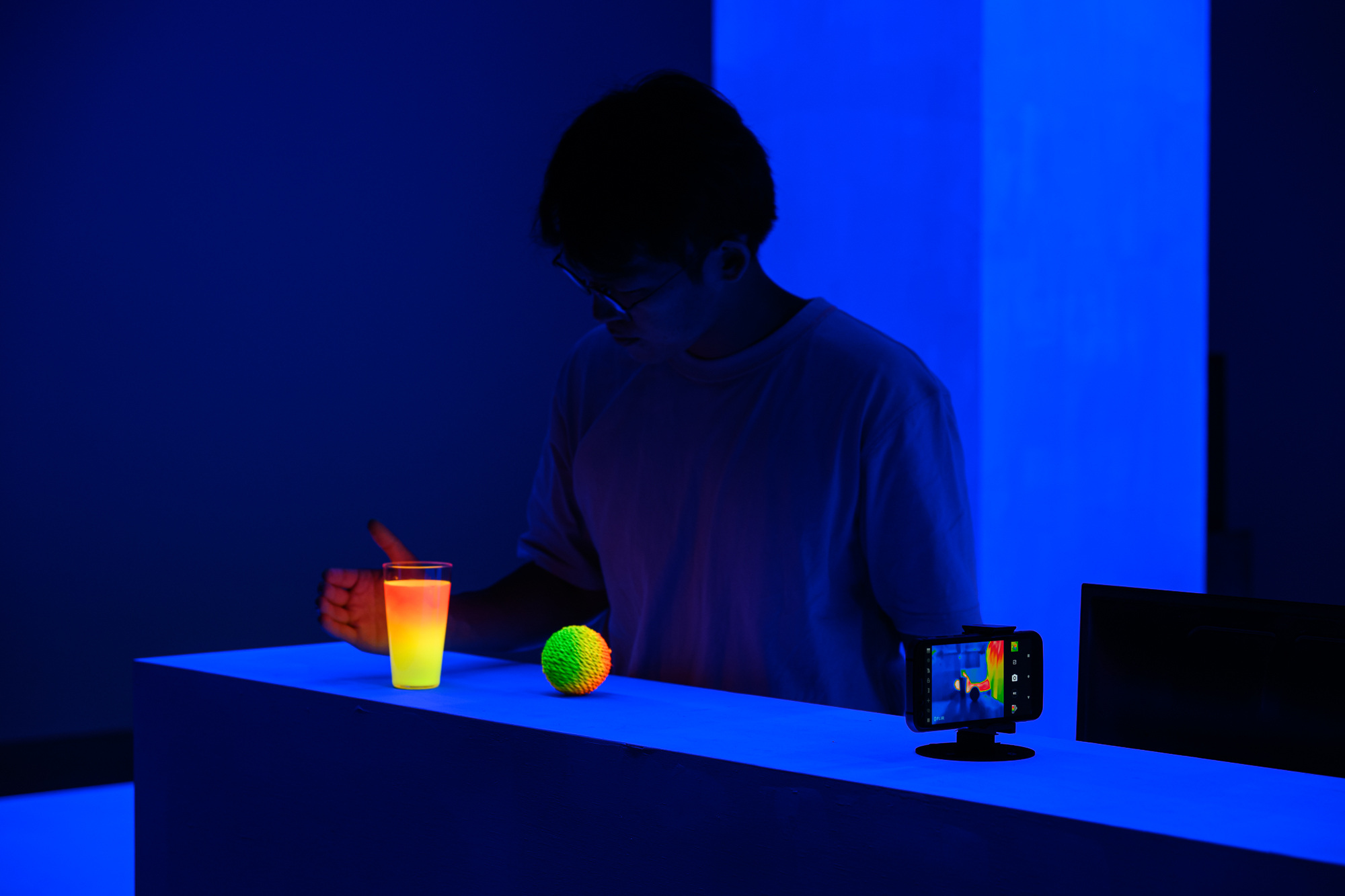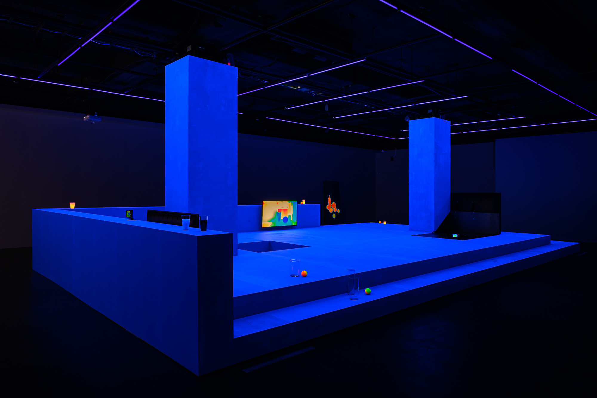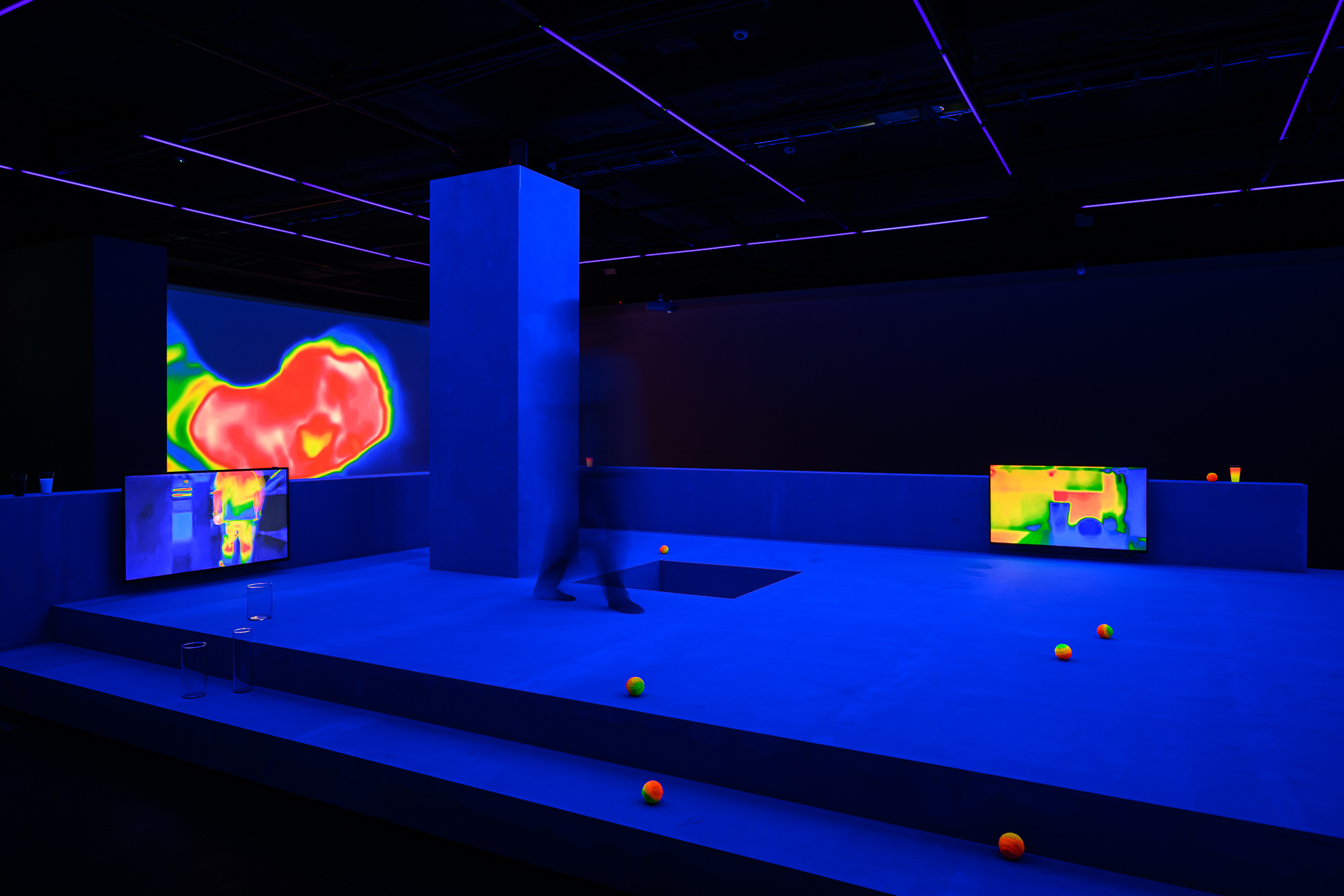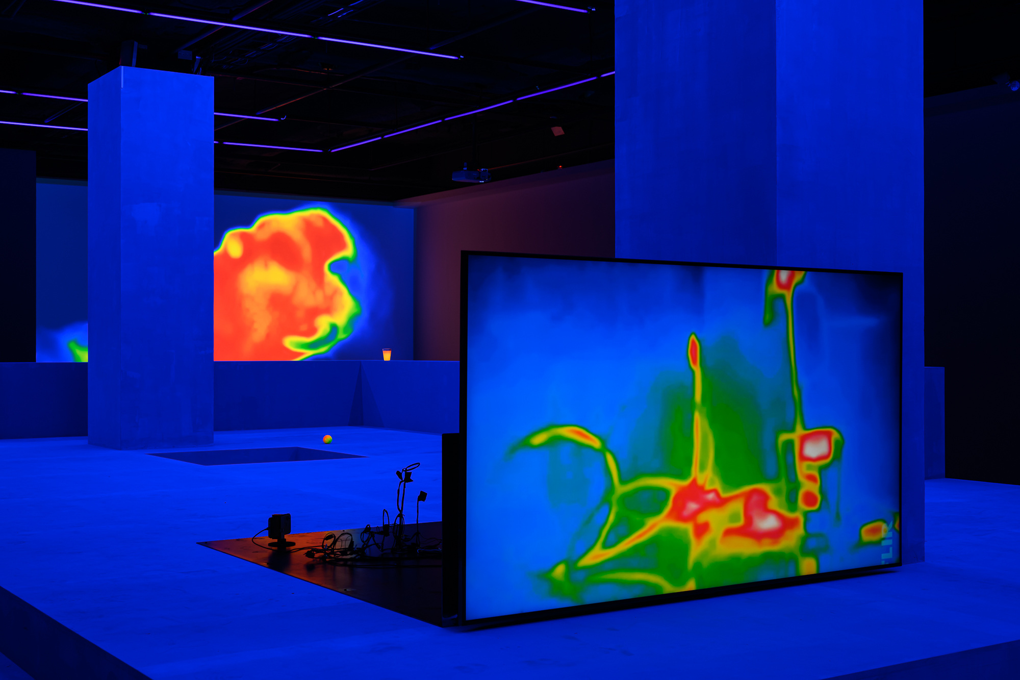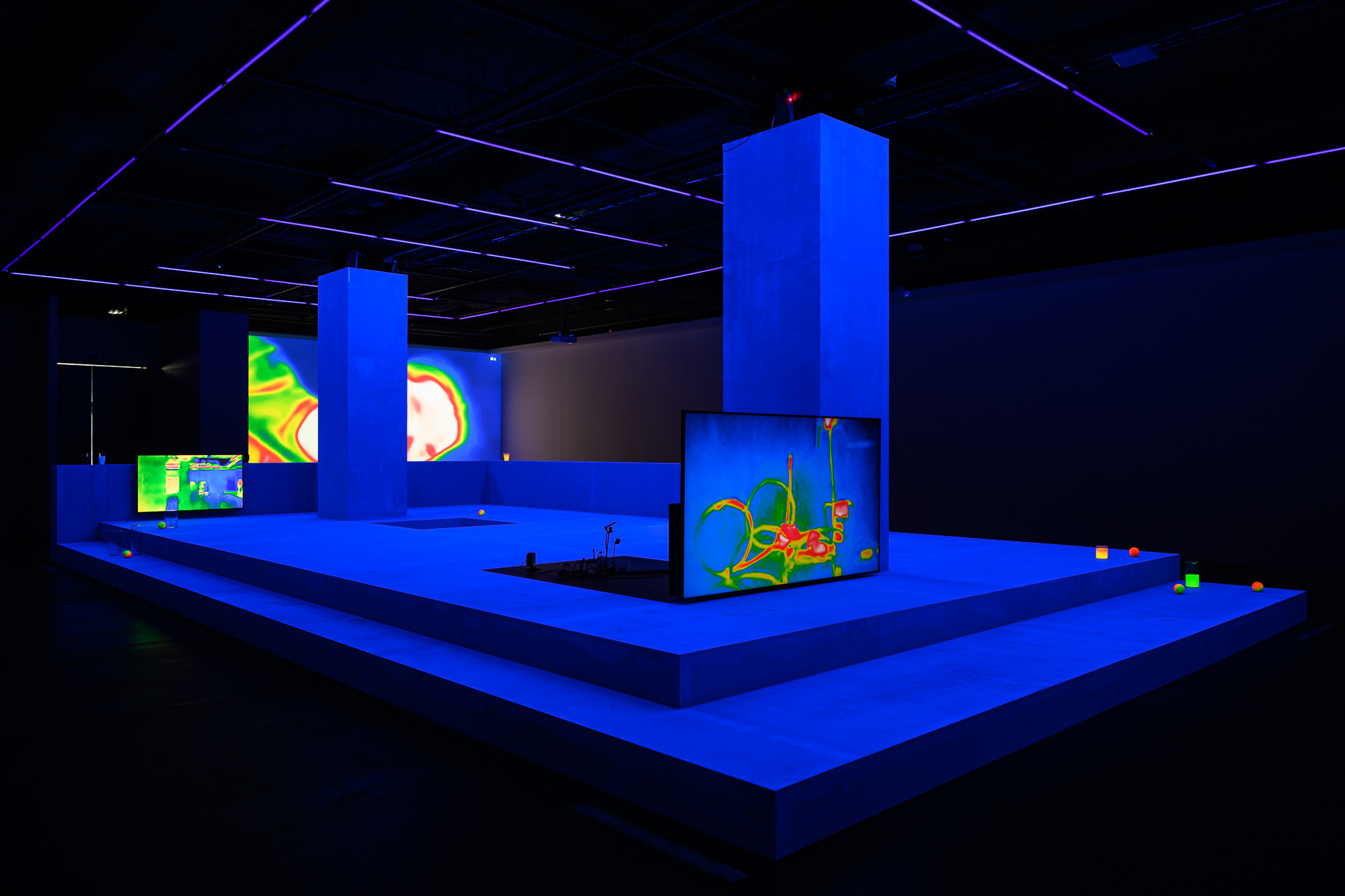 木作結構、多屏道錄像、電視、即時熱顯圖像、電腦、螢光漆、物件