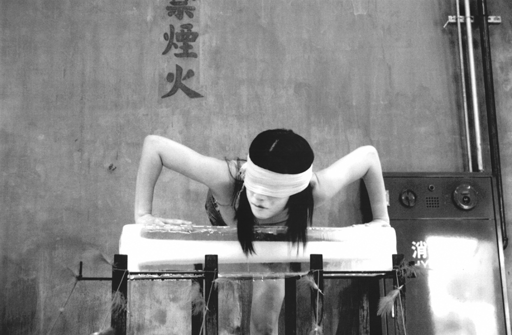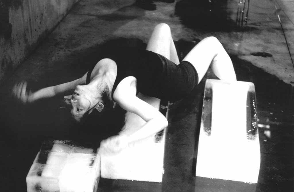 「冰」這個材質比我們想像的更難掌握,尤其是我們還要在它上面作表演。融化的速度、無法站立其上的滑溜感、蔓延的水、身體難以久待的冷…,都讓我們無法天真的按照我們的想像計劃進行。到最後,排演還必須安排在演出現場的下午,才有辦法作些微的掌握,因為倉庫一天中的溫度、光線都在變化,我們的演出必須設定在演出時的時間狀況。