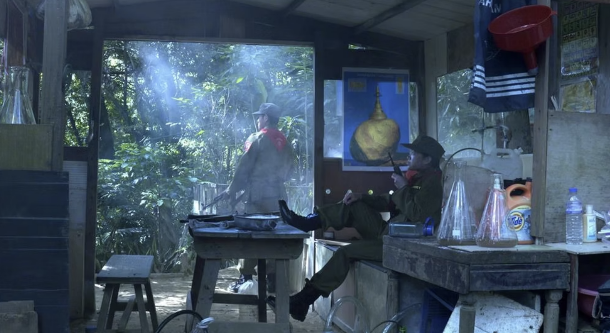 然而,尚武村還有著更深而暗黑的記憶,包含了從未謀面過的祖父,名叫高壽,民國五十年十一月三十日在村子深處的一個叫做「大湖」的地方喝農藥自殺,戶籍謄本上還被特別記載了「服毒自殺死亡」。多年以後,大伯居然也回到同一個地方上吊去逝。舅舅誤入歧途,長期吸食、注射海洛因,身上千瘡百孔,而這並不是村裡的唯一案例。「毒」這個字,彷彿交錯在自己對於尚武的深層記憶裡。2019年一則〈台東海邊撿到海洛因〉的新聞,啟動了更近一步的創作想法。新聞中,大武以南那片以出產美麗的南田石而著名的海岸,布滿了海洛因磚。繼續追查才知道,家鄉附近的毒品注射者,大多數使用的是來自於金三角的「雙獅地球標」海洛因,包裝下面則印有「一帆風順」四個字。