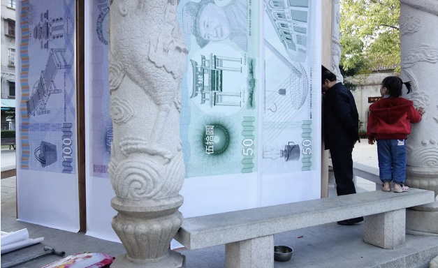 答應參與計畫的徐錚、老蘇及陳先生三個店家,我將他們的肖像以及產品的圖像,繪製成三款鈔票,並委託台灣彰化一間專門印製支票的印刷廠,製成具有流水號、防偽功能的鈔票。後續透過勞力、技術、知識的交換,以短期、輕鬆的方式進行了此次地方貨幣的藝術計畫,並在漳州的中山公園「九龍亭」蓋了一間木製小銀行,開放公園的民眾參與並投影相關影片。